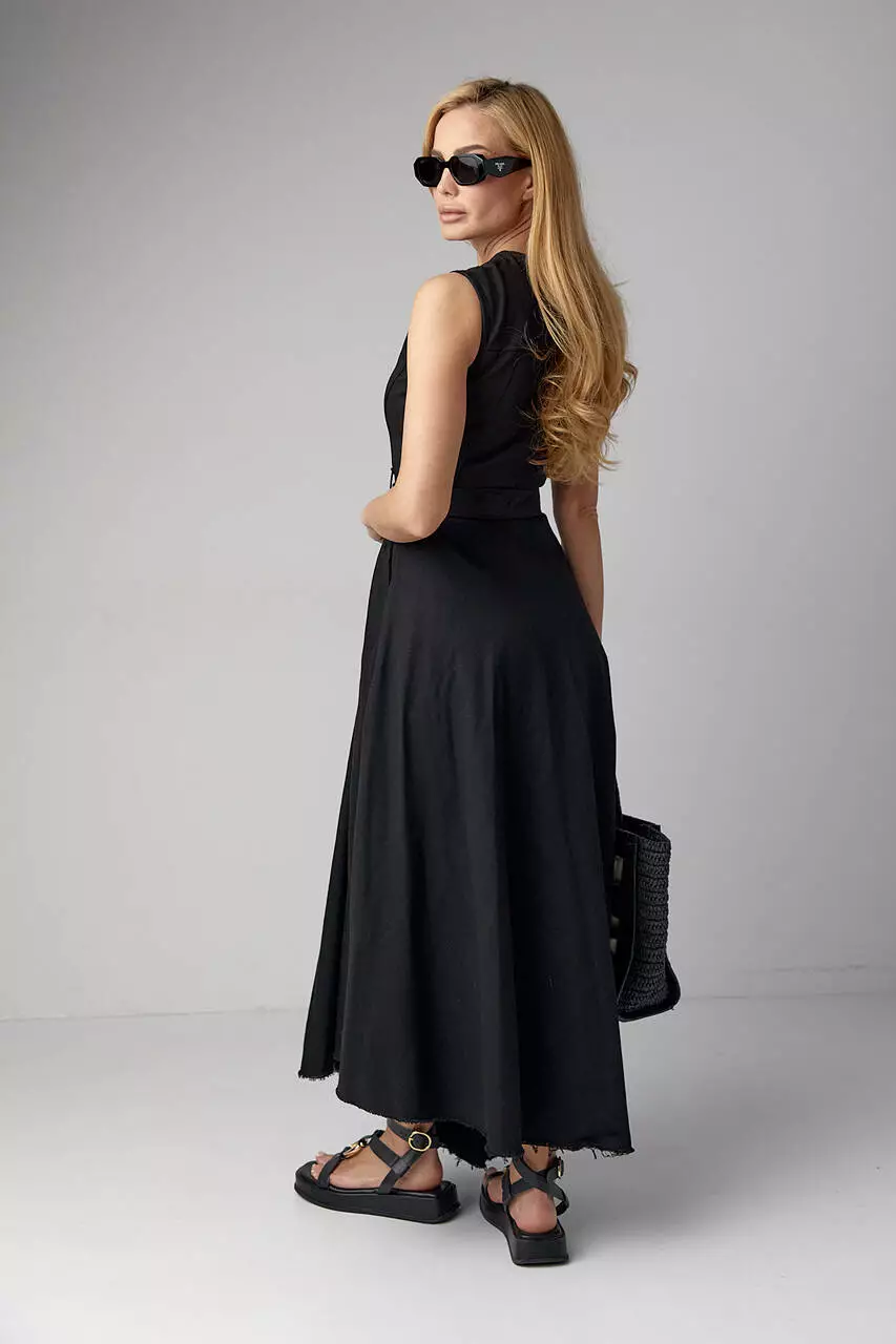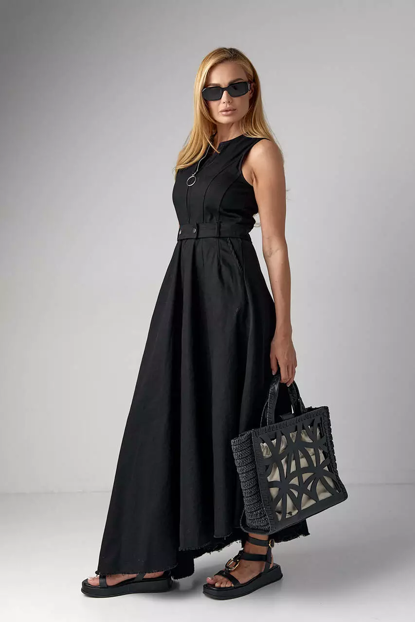 Это длинное женское платье излучает элегантность и изысканность в каждой детали. Оно имеет отрезную талию, которая придаёт фигуре изящную силуэтную форму.
