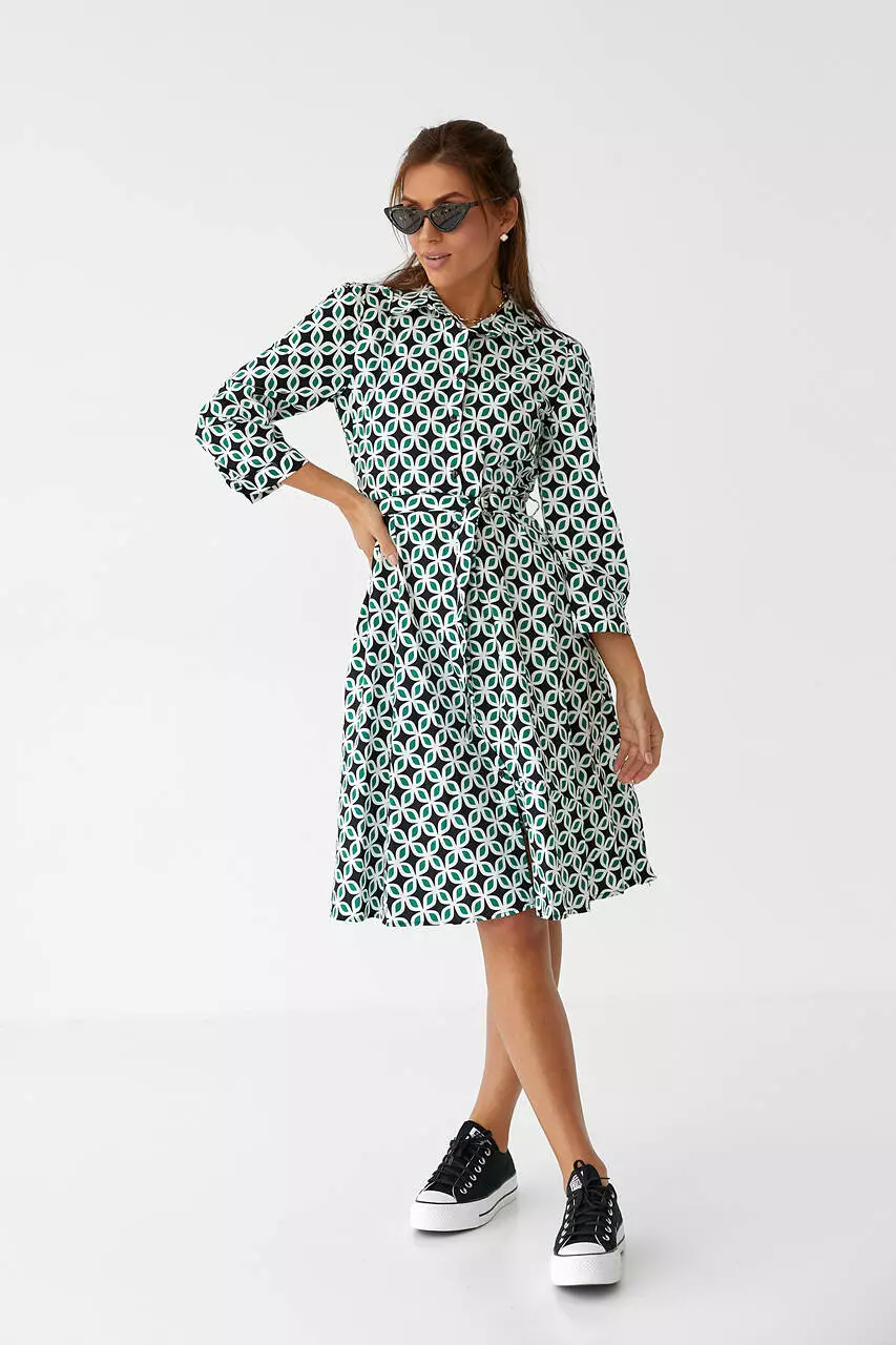 Платье миди на пуговицах под поясок hot fashion - зеленый цвет, S (есть размеры)