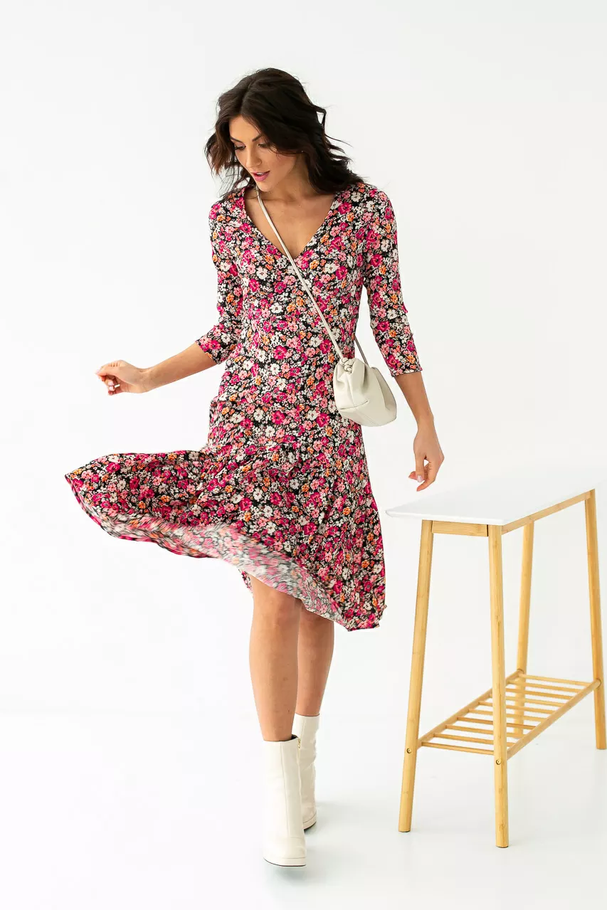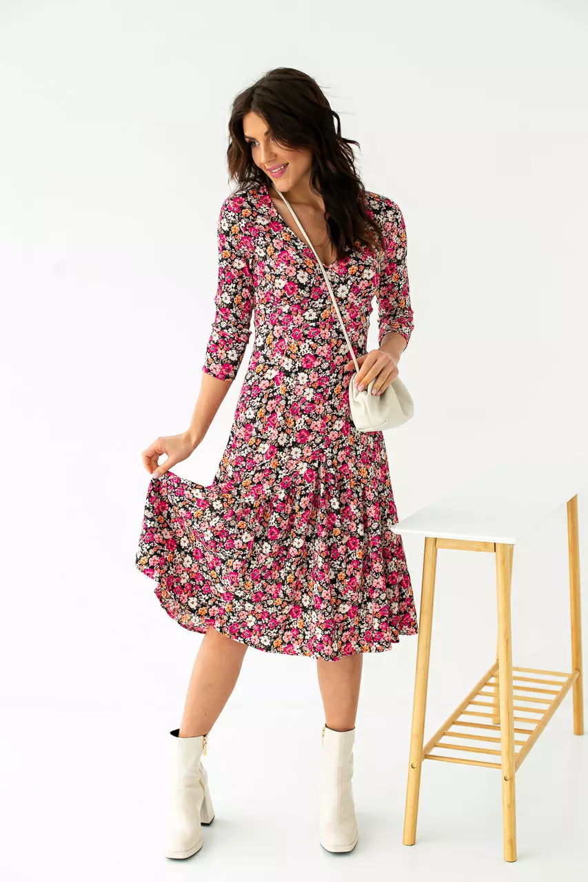 Модель платья романтического стиля выполнена из вискозной ткани