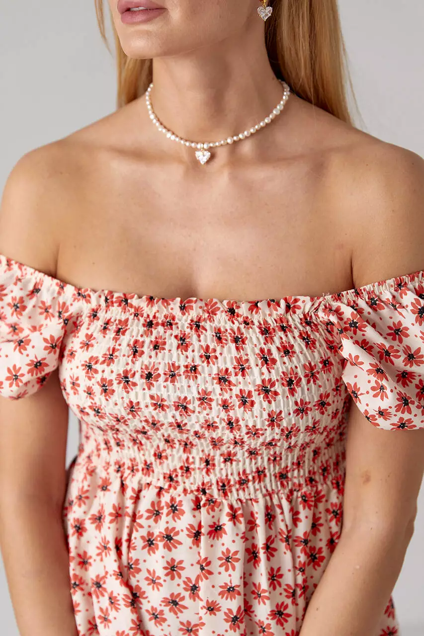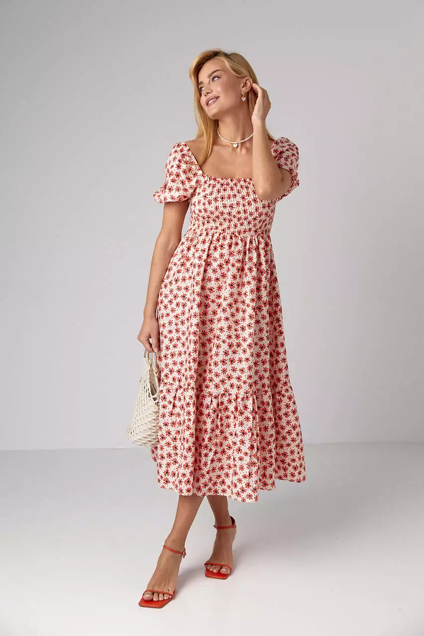 Короткие рукава-фонарики внизу также собраны на резинку,