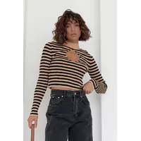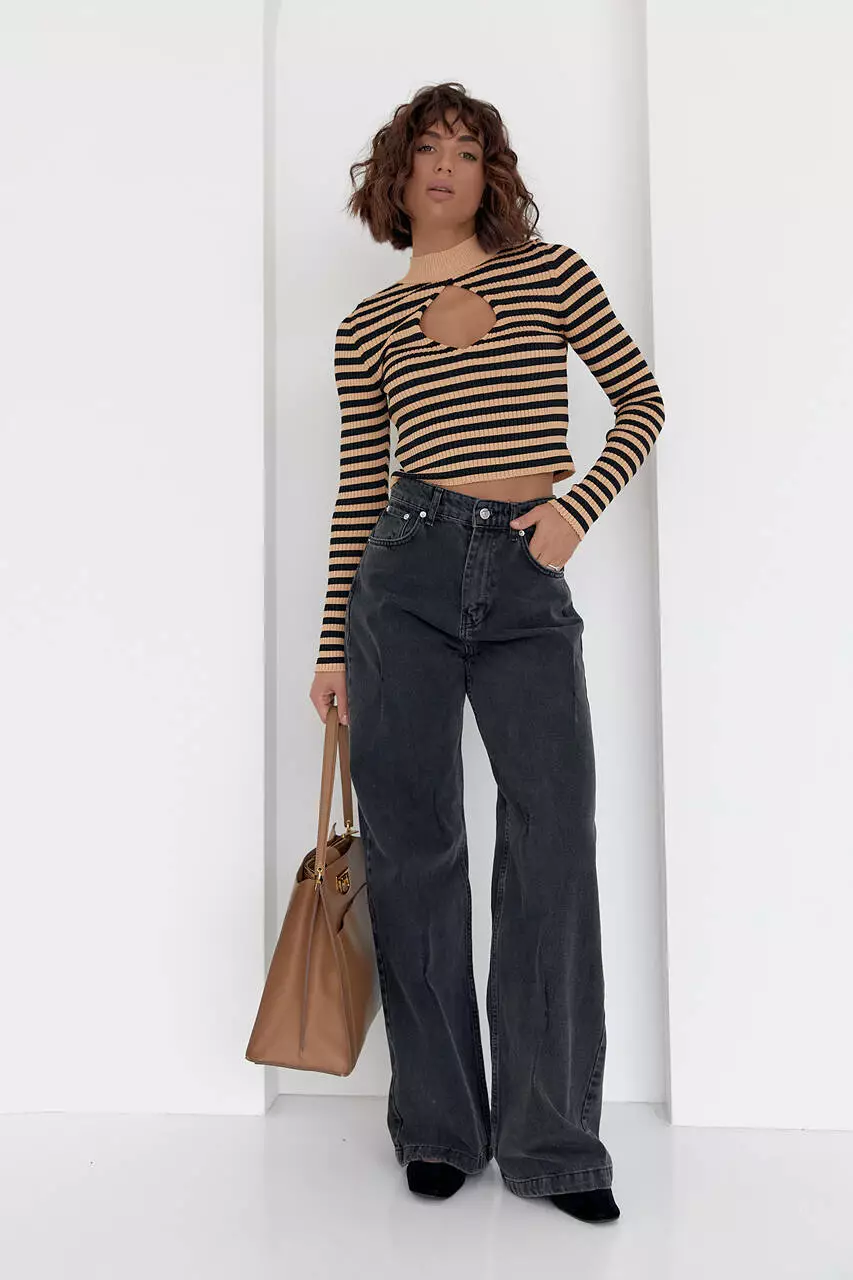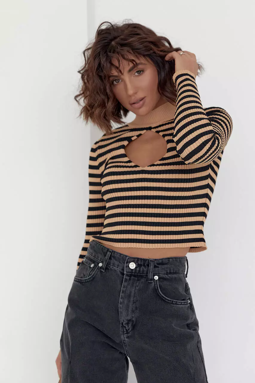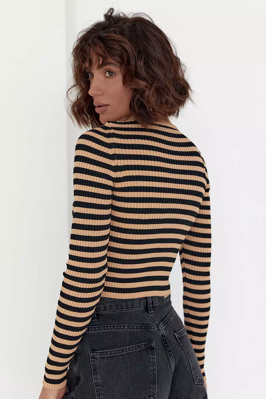 Полосатая водолазка с каплевидным вырезом - бежевый цвет, L (есть размеры)