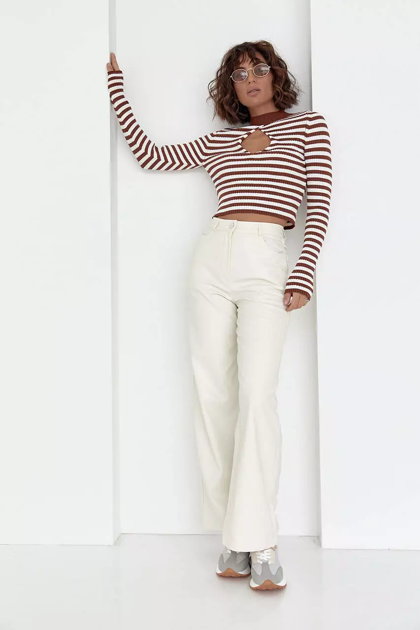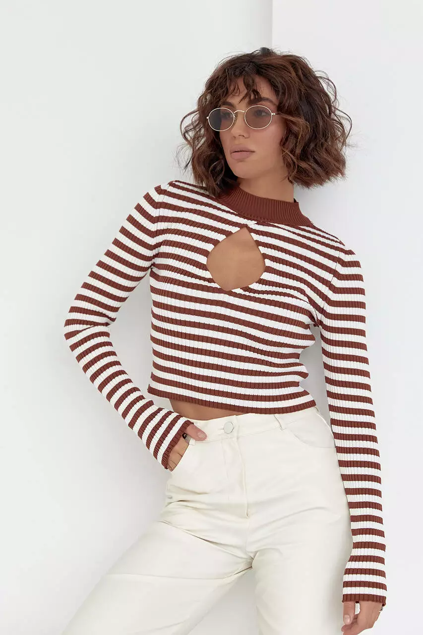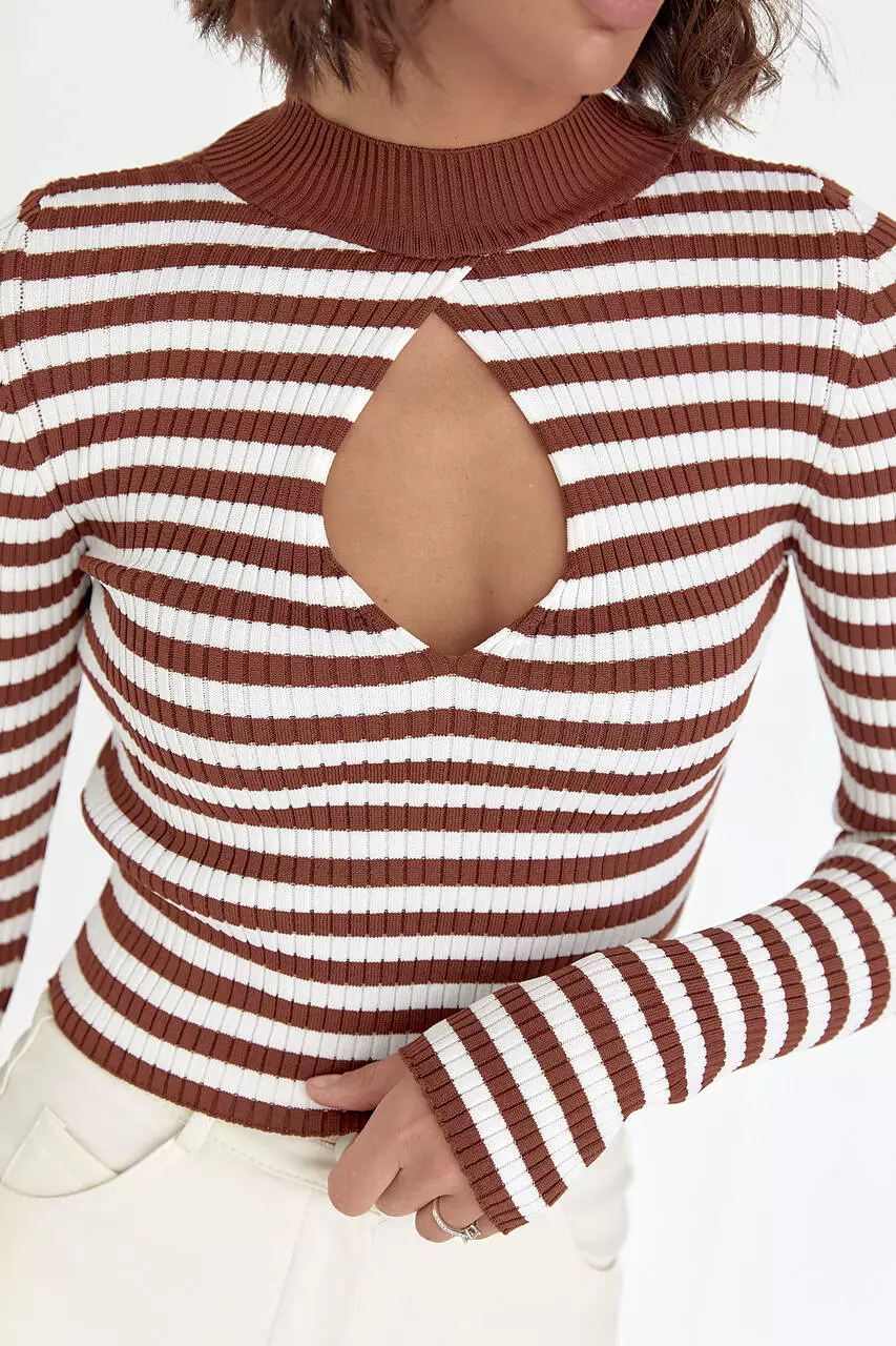 Идеальное сочетание модных трендов и классики! С такой полосатой водолазкой с фигурным вырезом ваши привычные образы заиграют по-новому. Она подойдет под любую одежду.