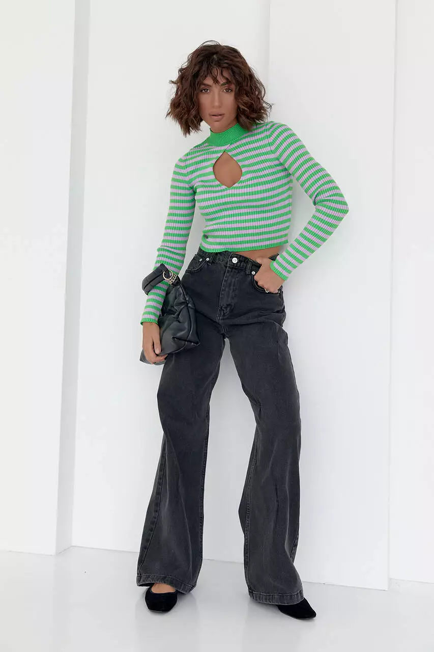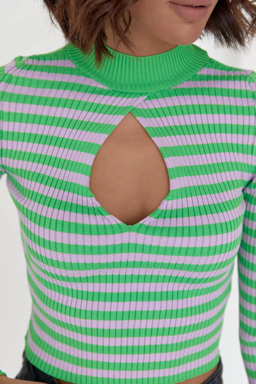 Полосатая водолазка с каплевидным вырезом - зеленый цвет, L (есть размеры)