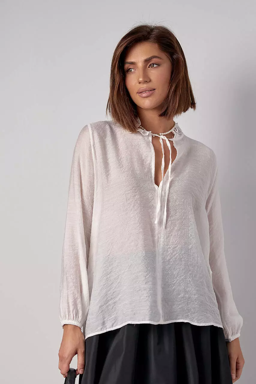 Полупрозрачная блуза с завязками - белый цвет, L (есть размеры)