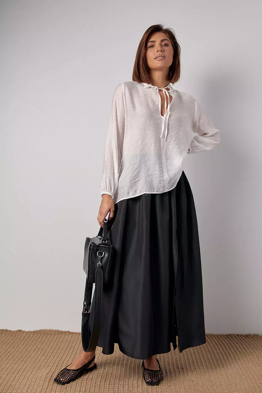 Полупрозрачная блуза с завязками - белый цвет, M (есть размеры)