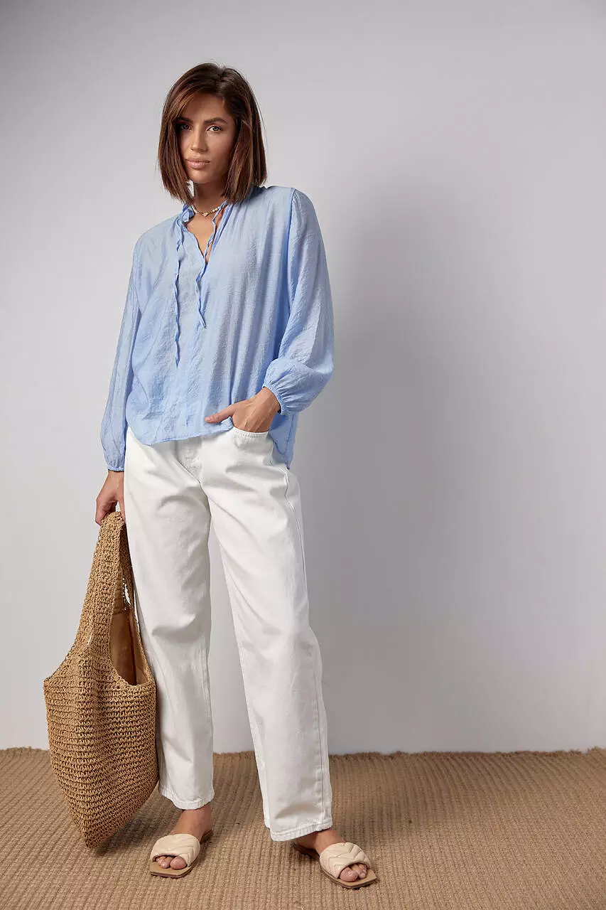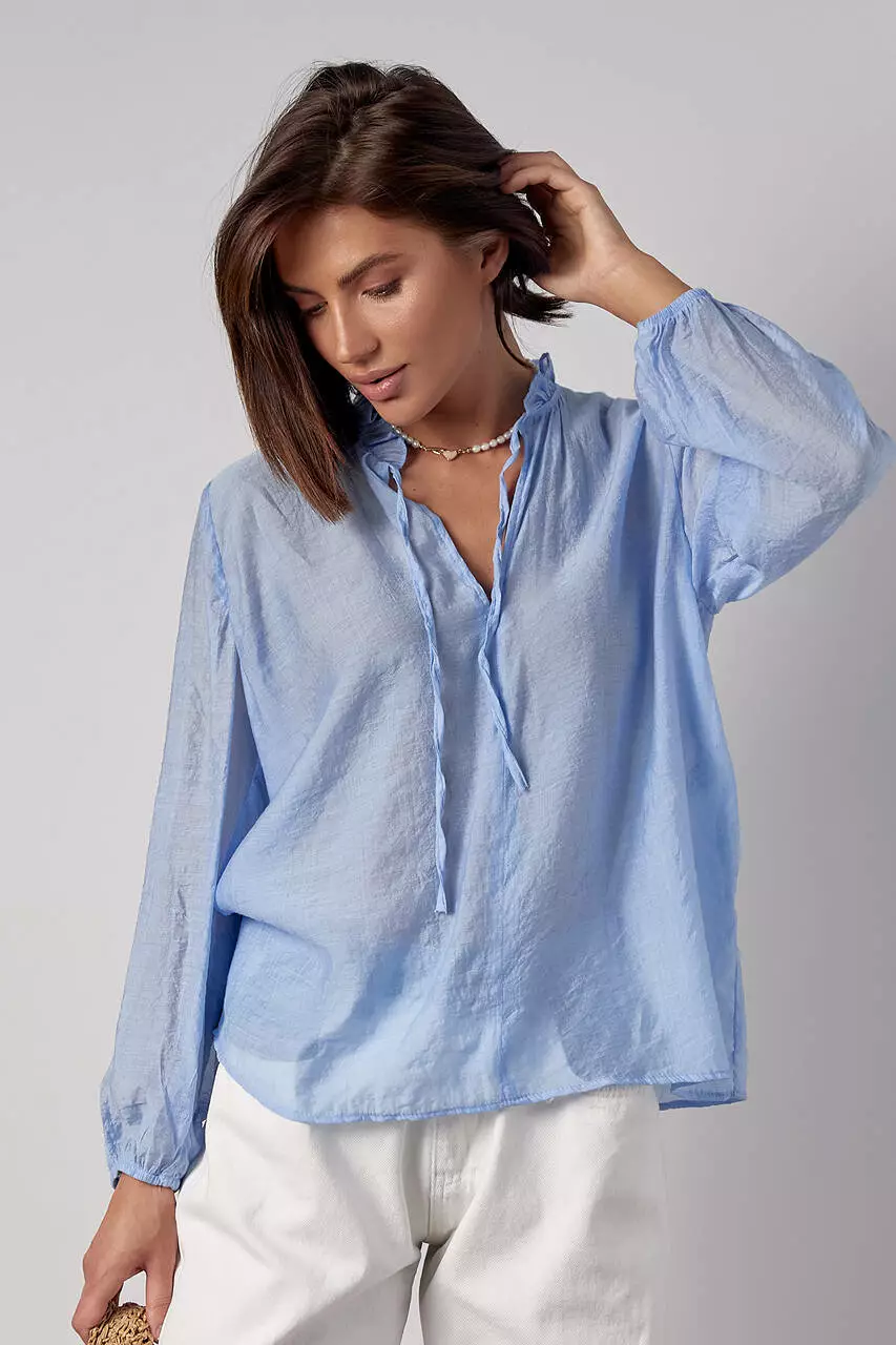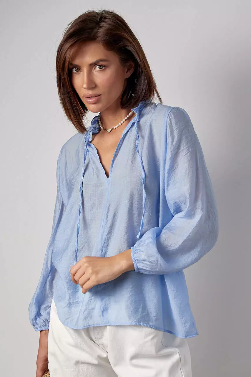 Полупрозрачная блуза с завязками - голубой цвет, L (есть размеры)
