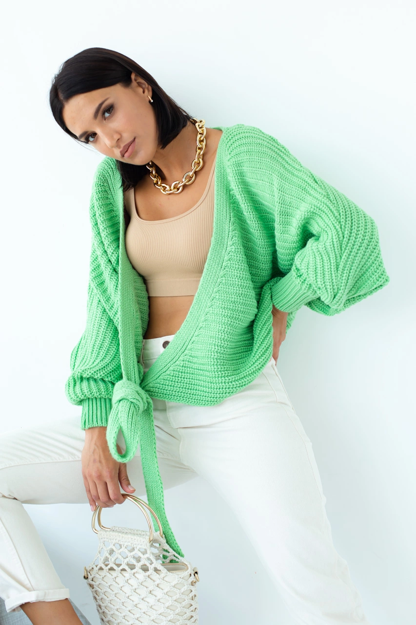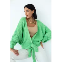Короткая вязаная кофта с запахом и поясом QU STYLE - салатовый цвет, L (есть размеры)