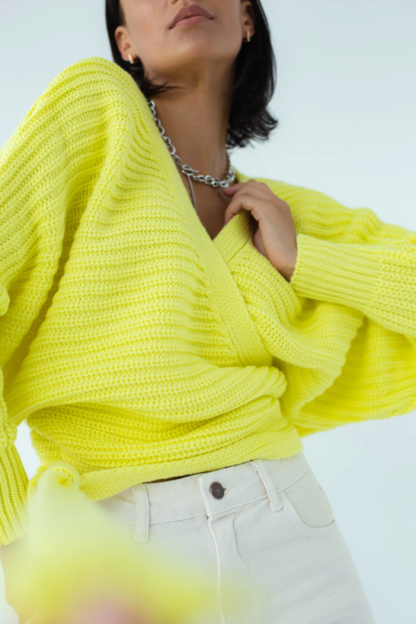 Короткий кардиган в стиле "кимоно" изготовлен из акриловой пряжи
