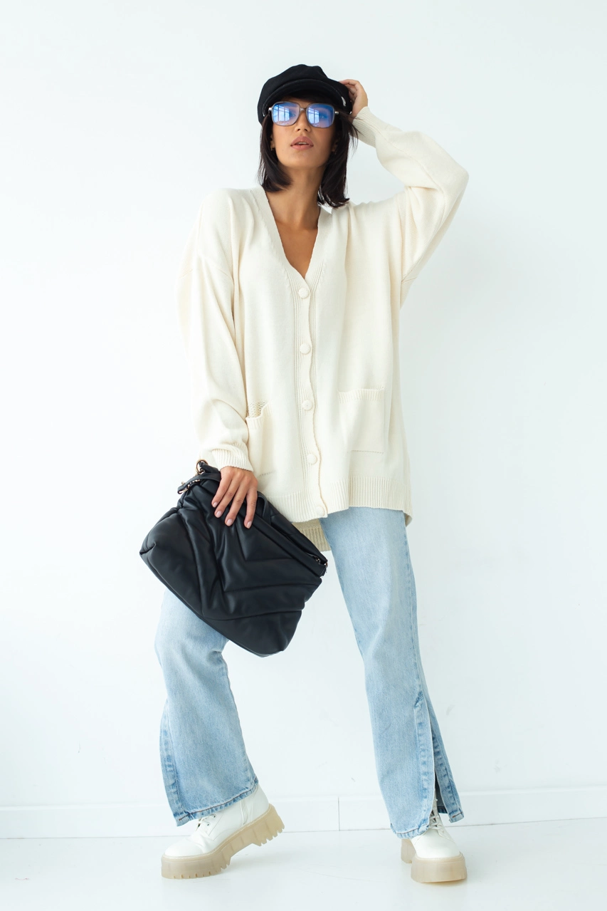 трикотажа мелкой машинной вязки. Прямой фасон изделия дополнен