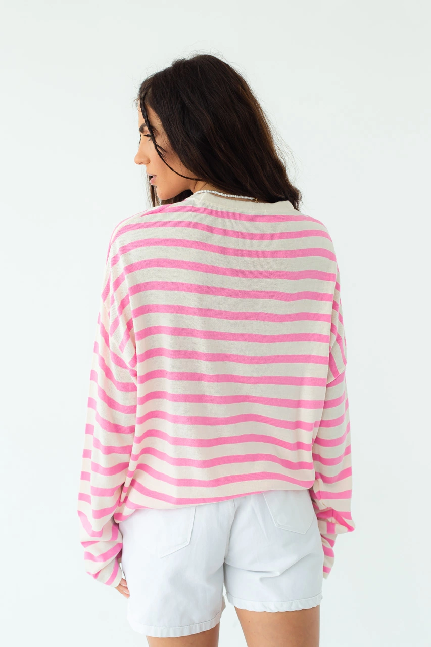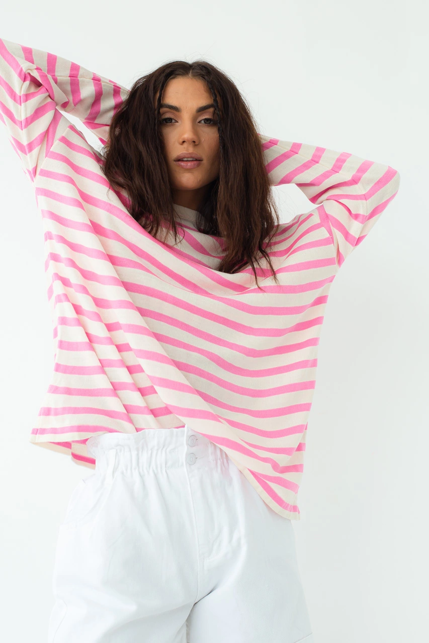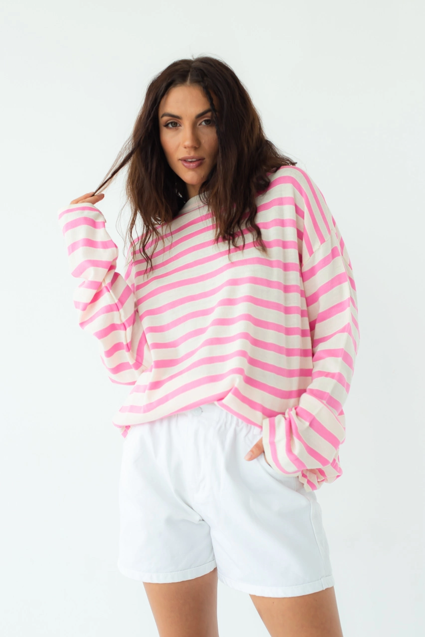 QU STYLE Свитшот оверсайз в полоску - пудра цвет, L