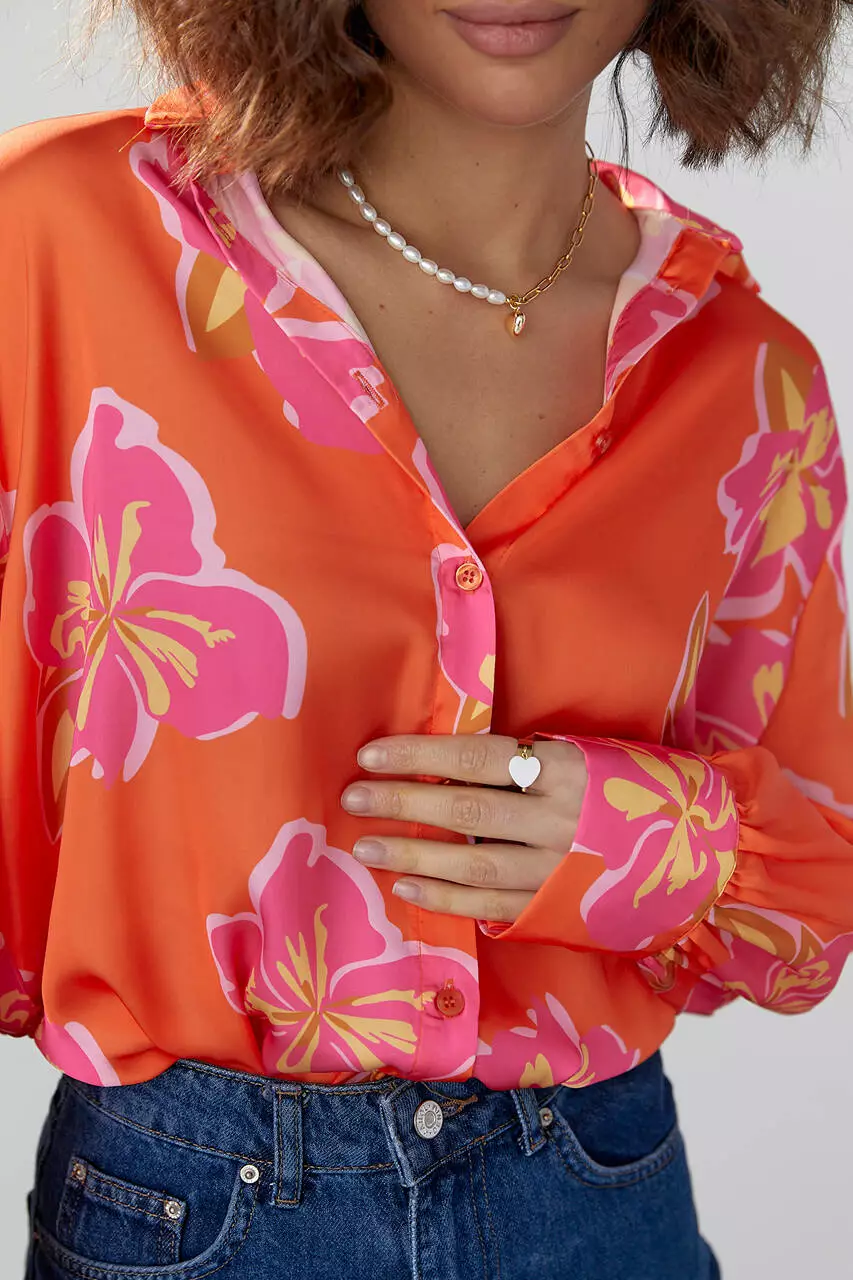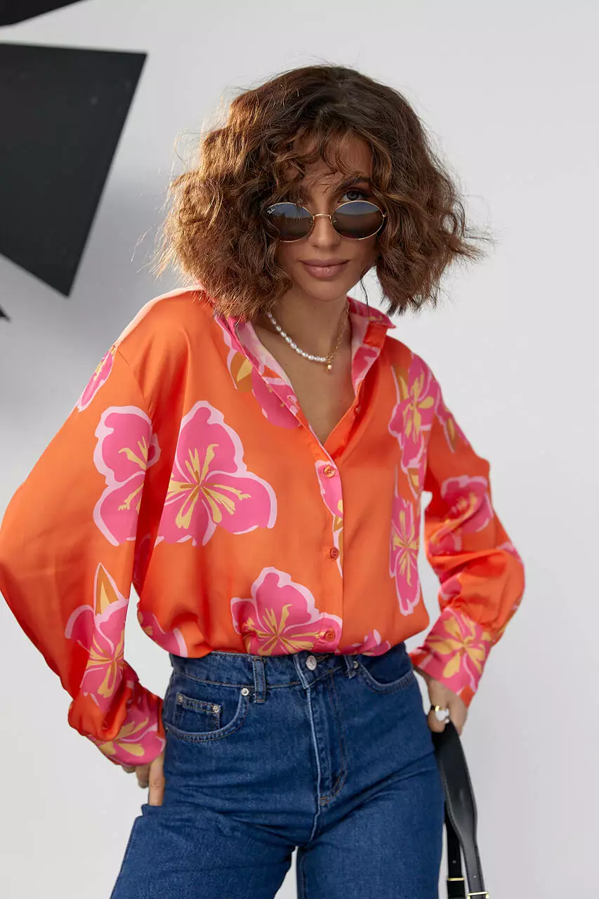 Для элегантных, женственных образов выбирай нежную шелковую блузу украшенную модным цветочным рисунком. Она превосходно будет смотреться с брюками палаццо или юбками плиссе длиной миди.