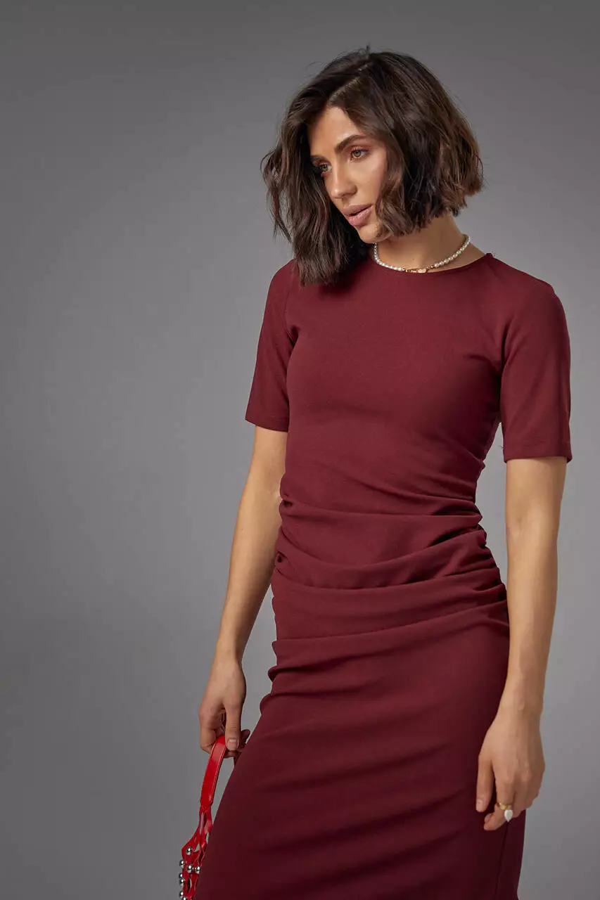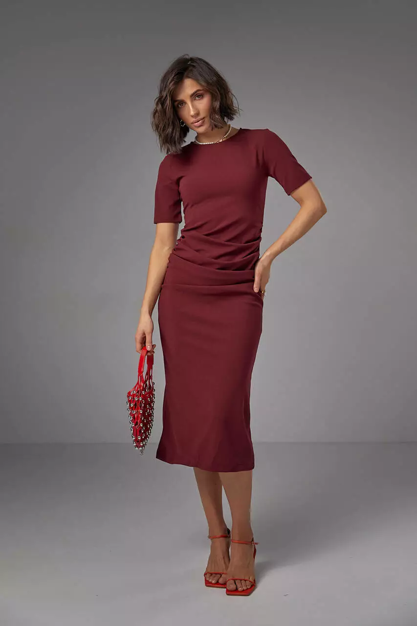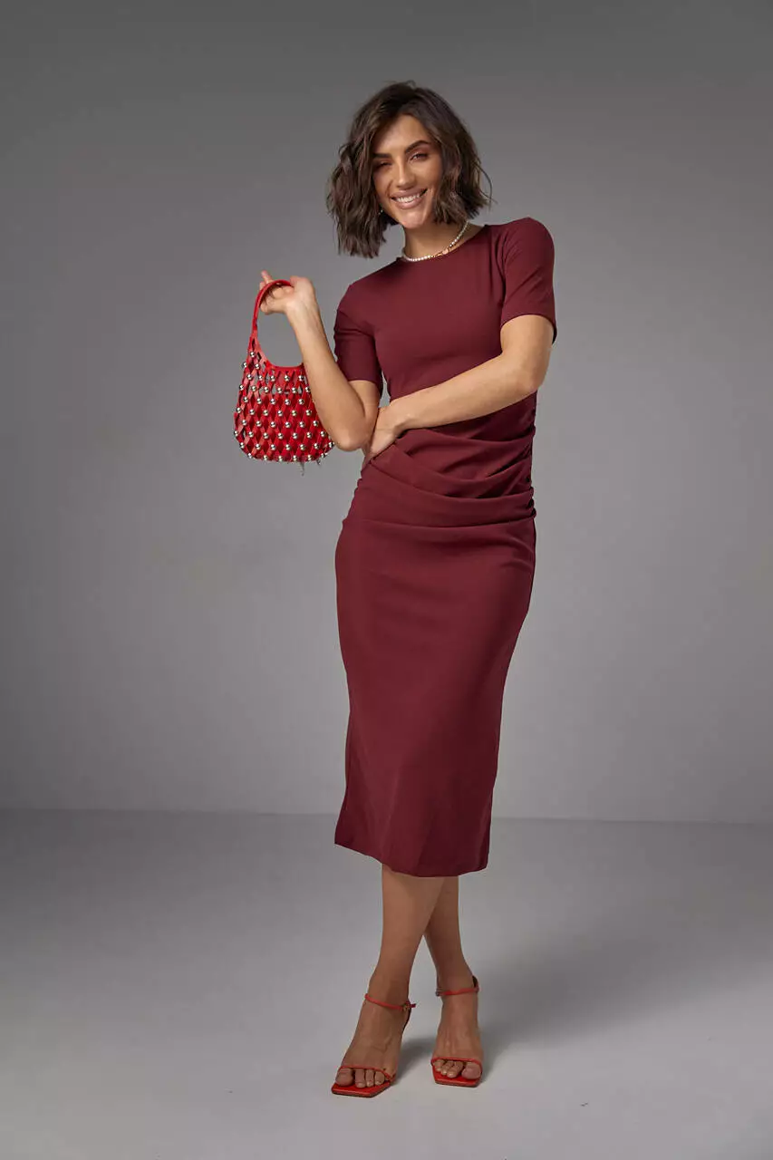 Силуэтное платье миди с драпировкой по бокам - это стильный и