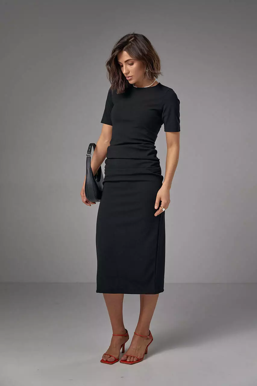 Силуэтное платье миди с драпировкой по бокам - это стильный и