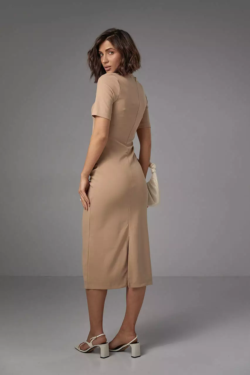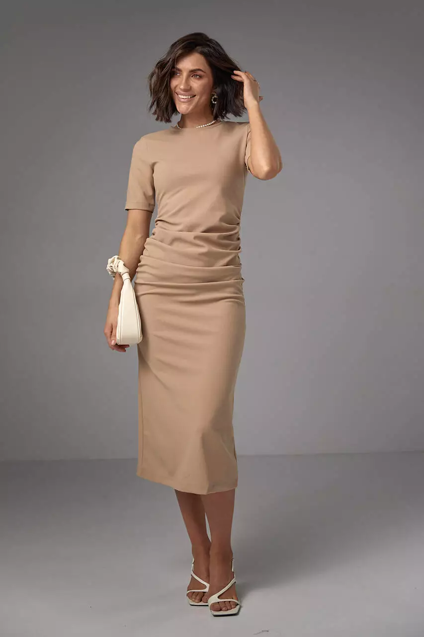 Силуэтное платье миди с драпировкой по бокам - это стильный и