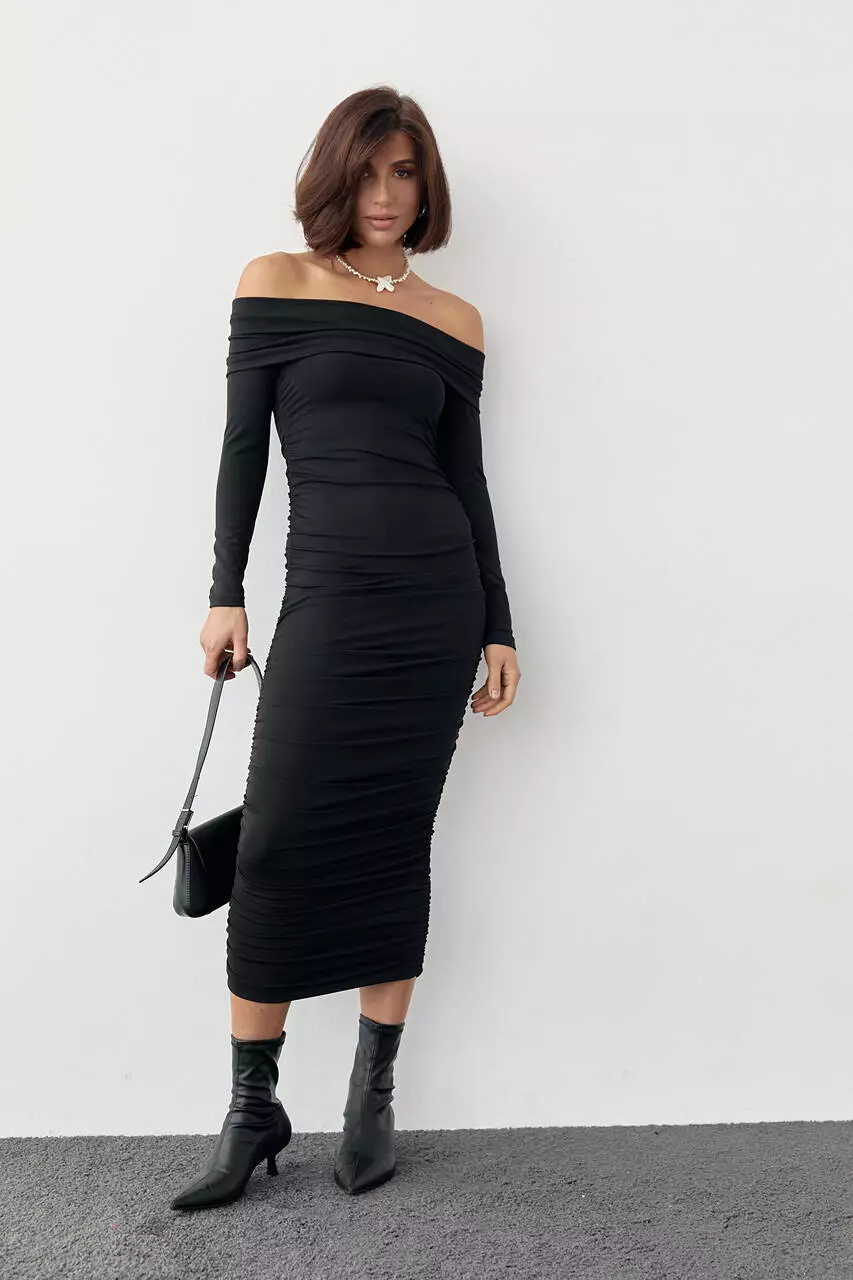 Наша новинка - длинное силуэтное платье с эластичного бифлекса,