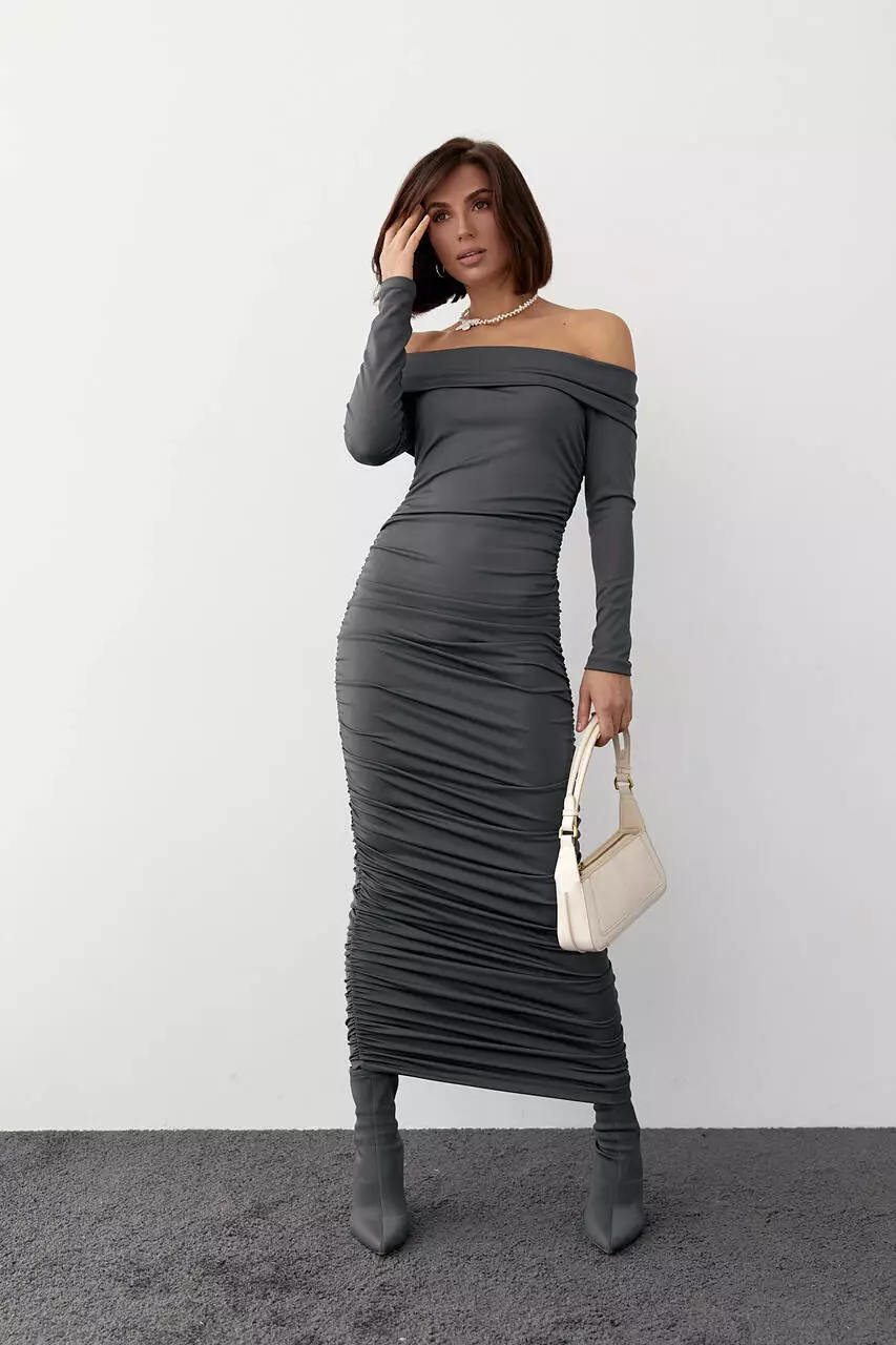 Наша новинка - длинное силуэтное платье с эластичного бифлекса,