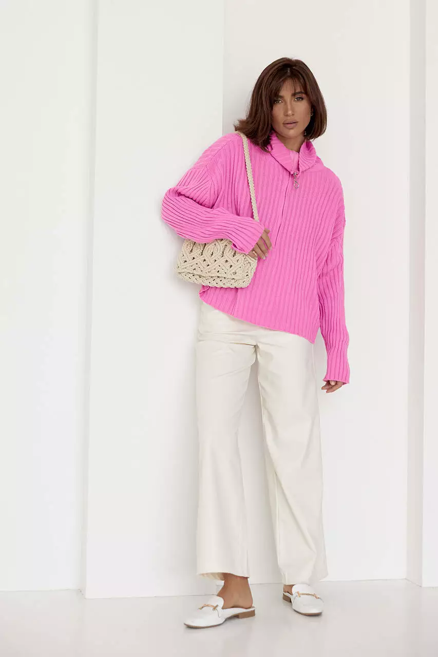 Свитер женский с молнией на воротнике - розовый цвет, L (есть размеры)