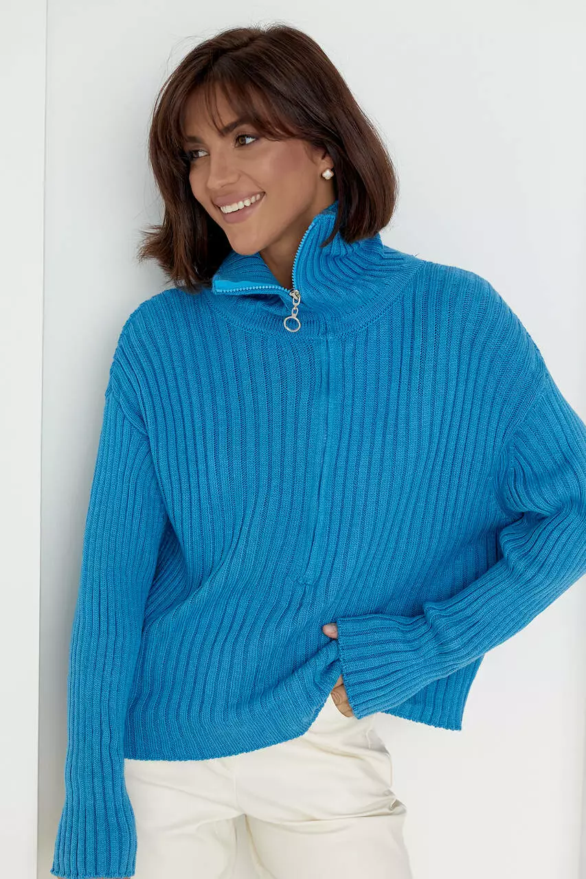 Этот молодежный вязаный свитер с высоким воротником на молнии подарит тебе тепло и уют, и при этом станет главным акцентом каждого наряда.