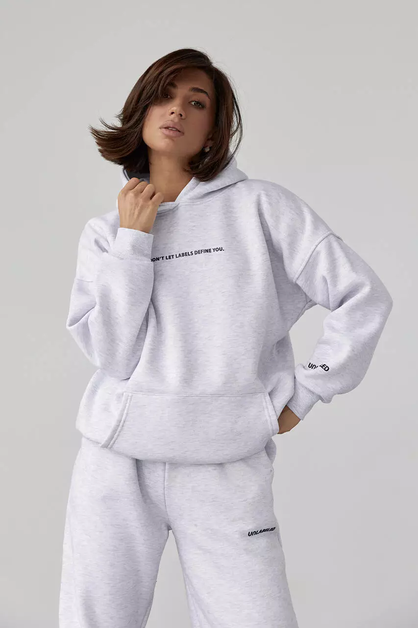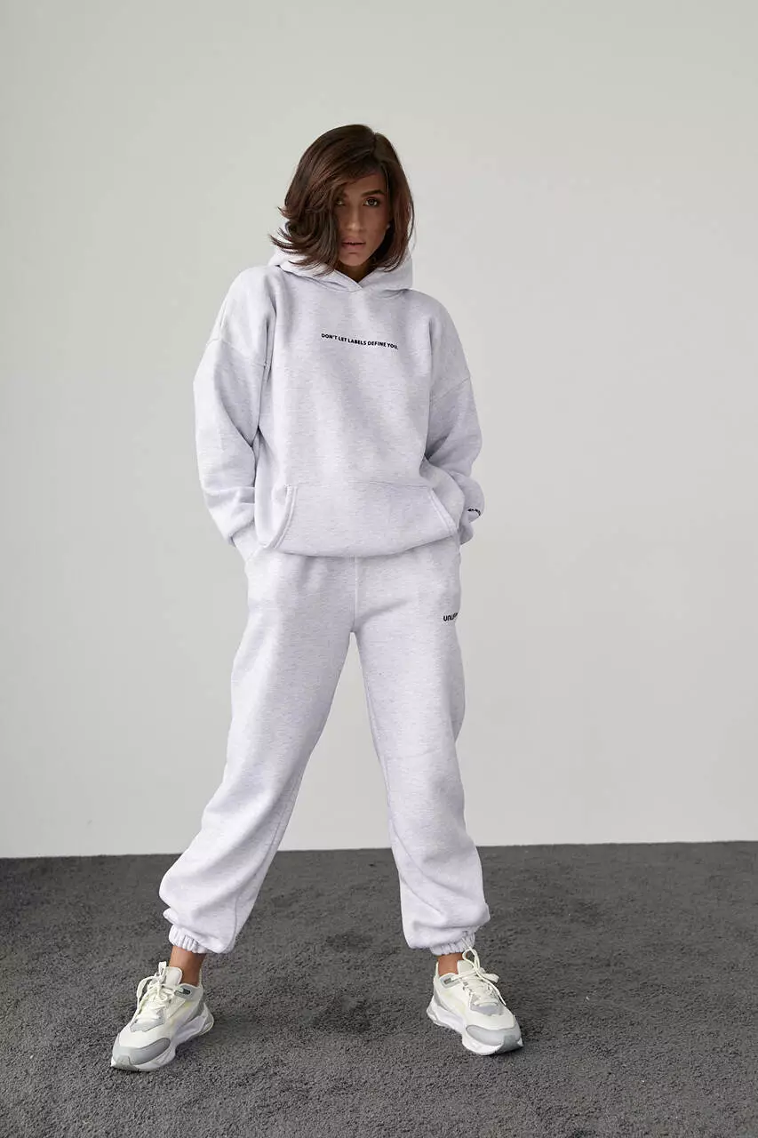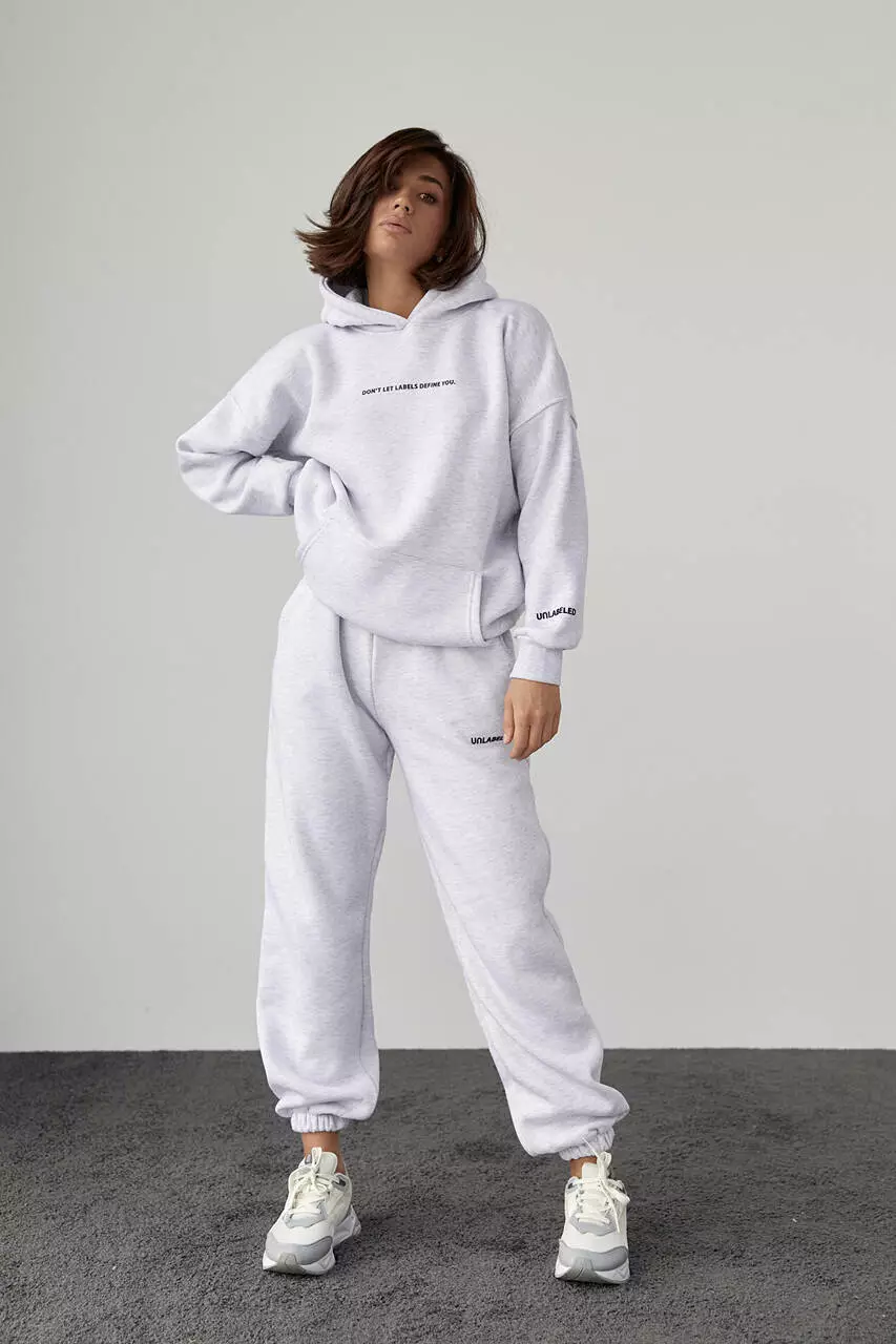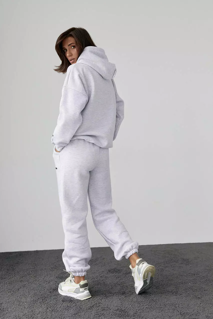 Теплый трикотажный костюм с худи и джоггерами - светло-серый цвет, L (есть размеры)