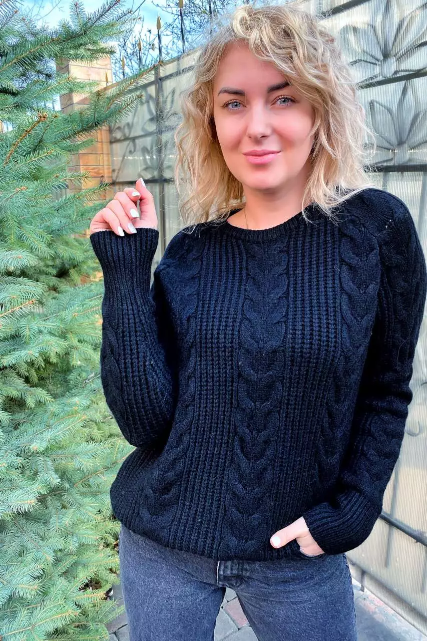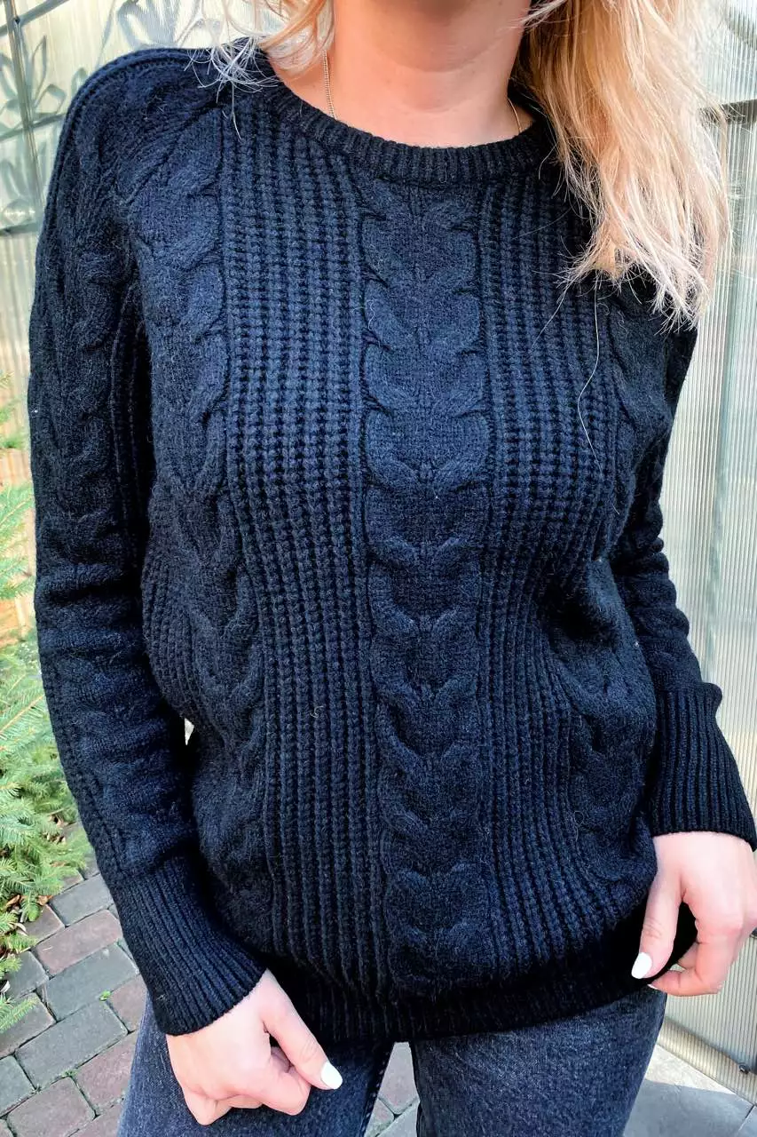 Трендовый свитер с косами фасона oversize - черный цвет, XL/XXL