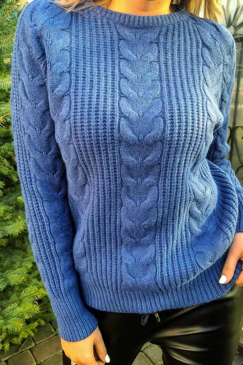 Трендовый свитер с косами фасона oversize - синий цвет, XXL/XXXL