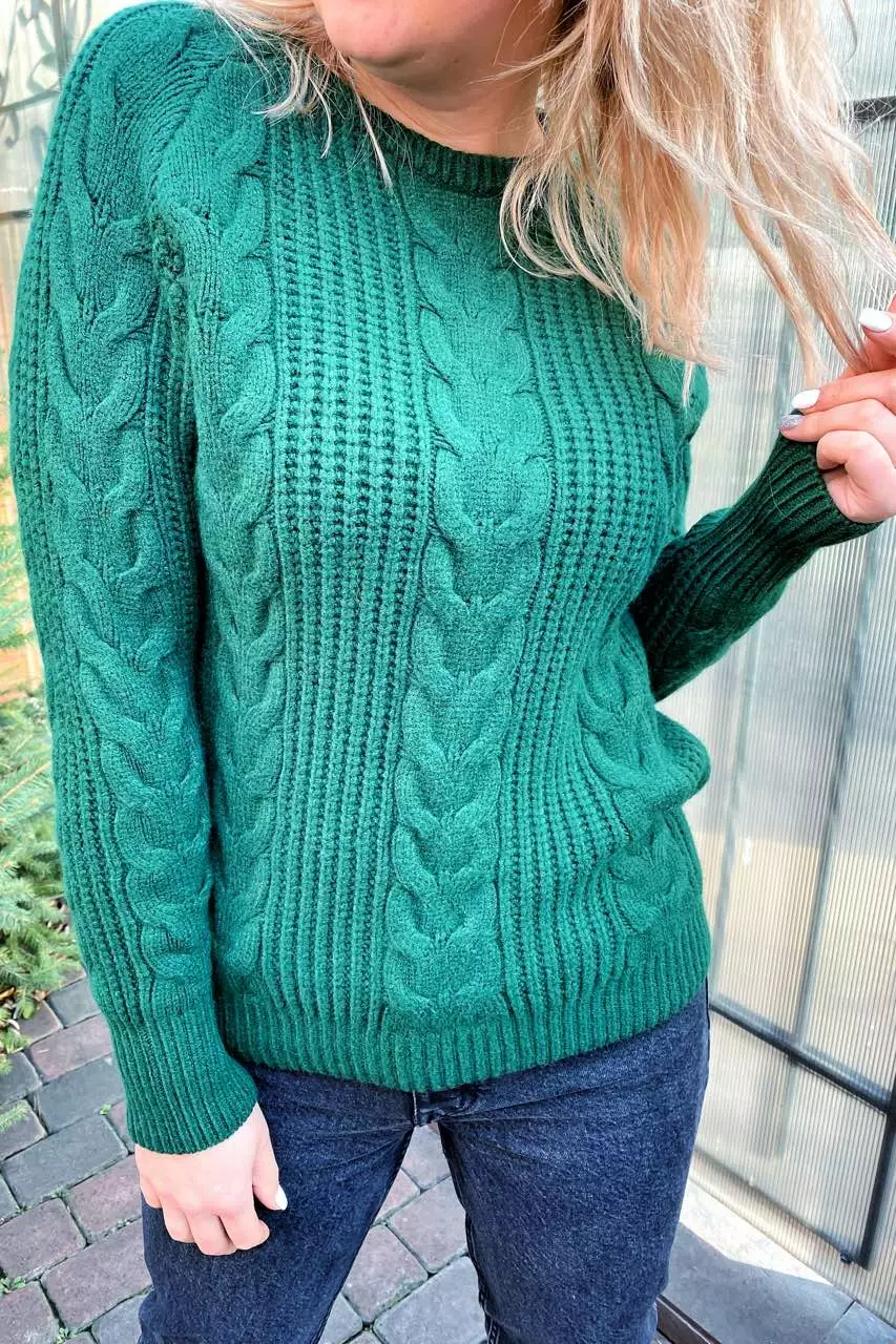 Трендовый свитер с косами фасона oversize - зеленый цвет, XXL/XXXL