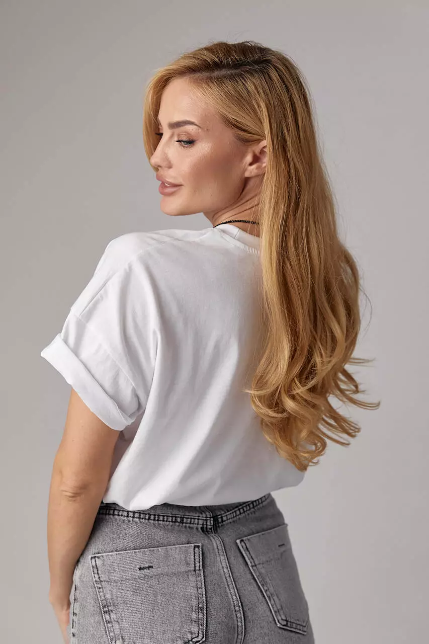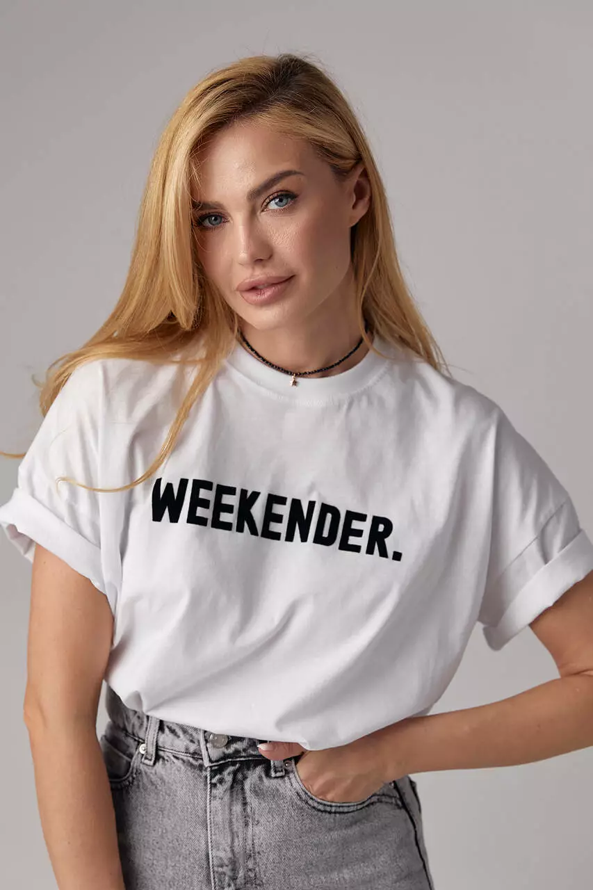 Женская трикотажная футболка прямого кроя с надписью "Weekender" – это модный и удобный элемент гардероба для создания стильных образов.