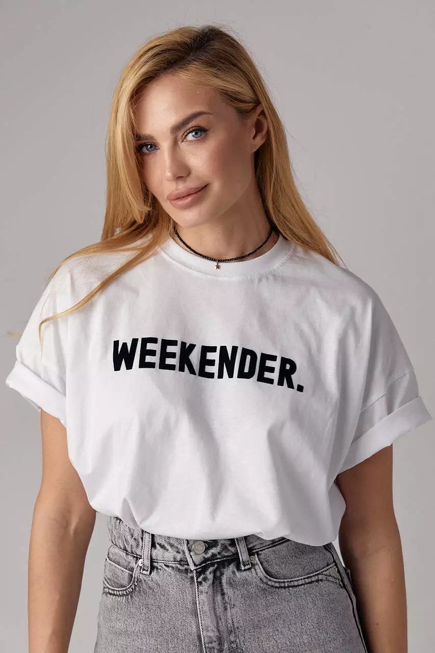 Трикотажная футболка с надписью Weekender - белый с черным цвет, L (есть размеры)