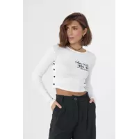 Трикотажная кофта в рубчик с принтом и кнопками - молочный цвет, M (есть размеры)