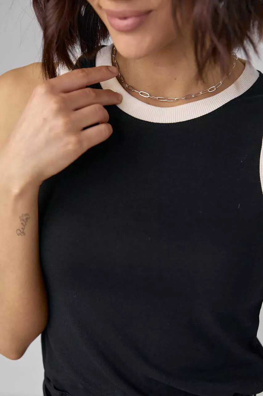 Трикотажная майка с контрастной окантовкой - черный цвет, M (есть размеры)