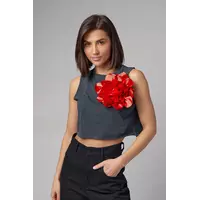 Эта майка прямого кроя из трикотажного материала - прекрасное сочетание комфорта и стиля. На передней части слева расположен объемный цветок, который придает изделию изысканность и уникальность.