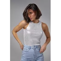 Трикотажная майка в рубчик с блестящим напылением спереди - белый цвет, M (есть размеры)