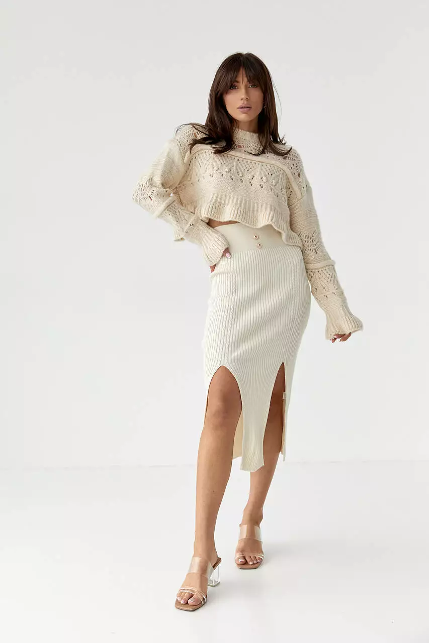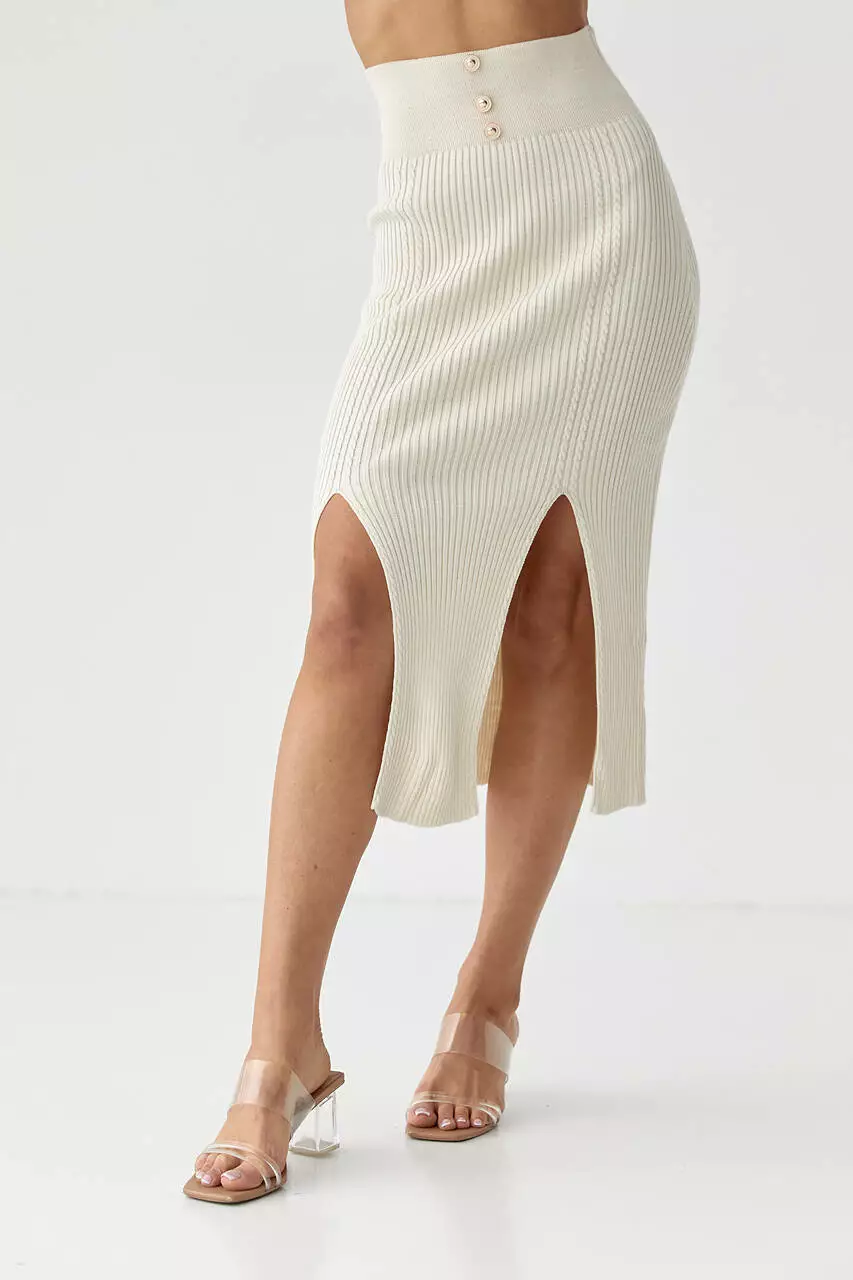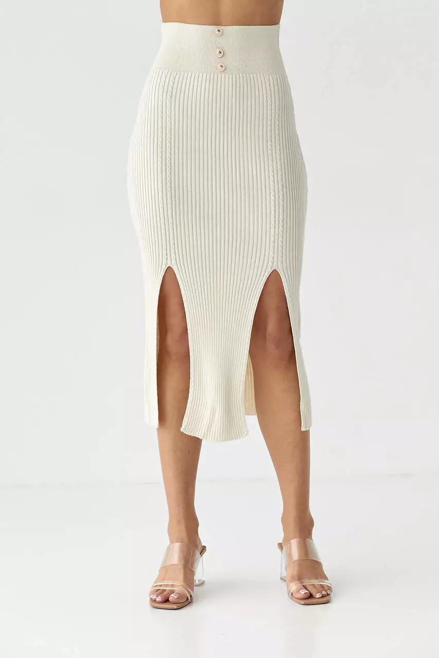 В модели низ прямой, с двумя разрезами. В поясе вшита широкая