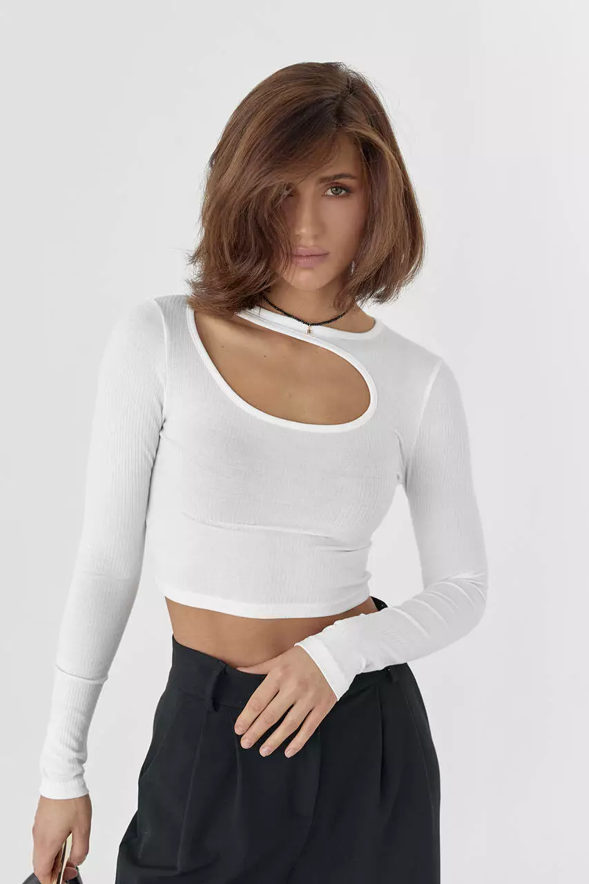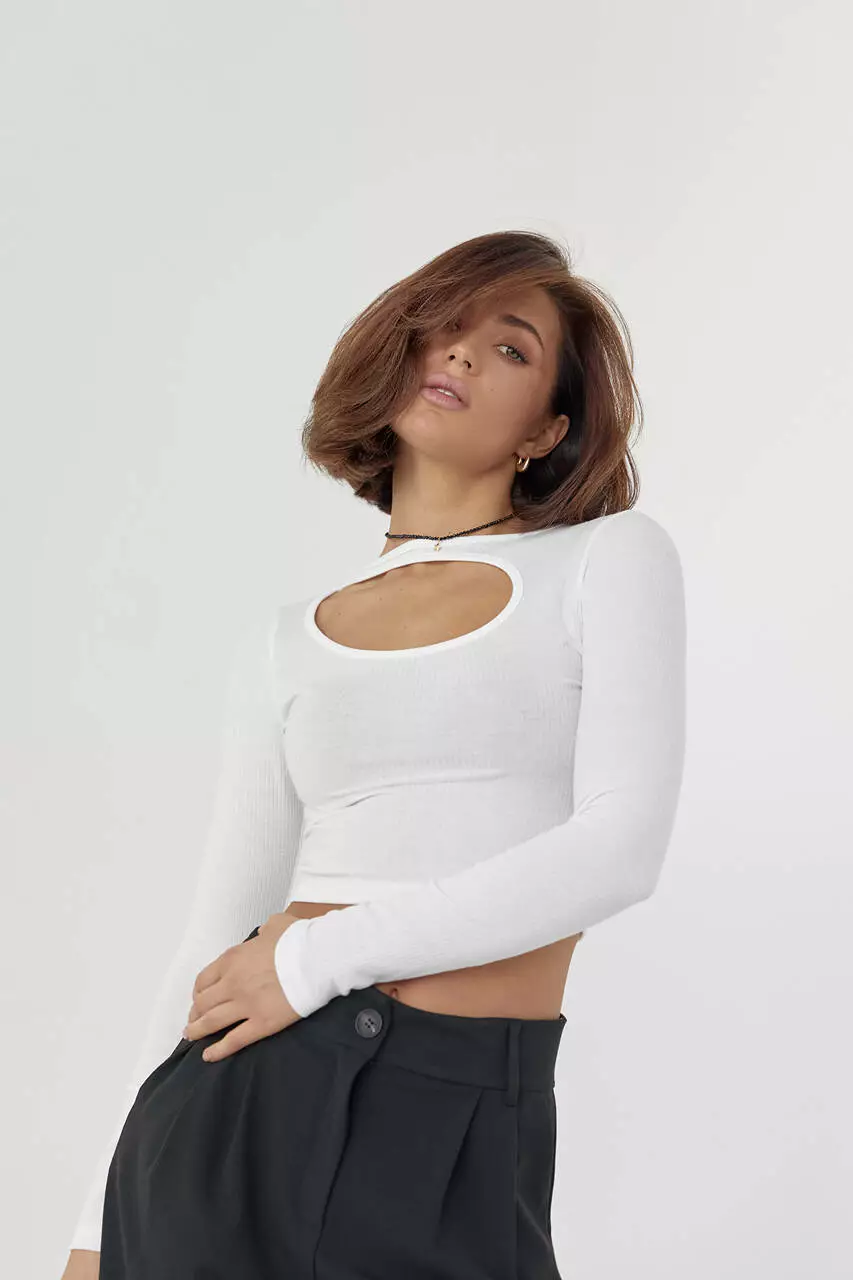 Эта модная кофточка покорит твое сердце не только своим трендовым дизайном, но эластичным трикотажем в мелкий рубчик.