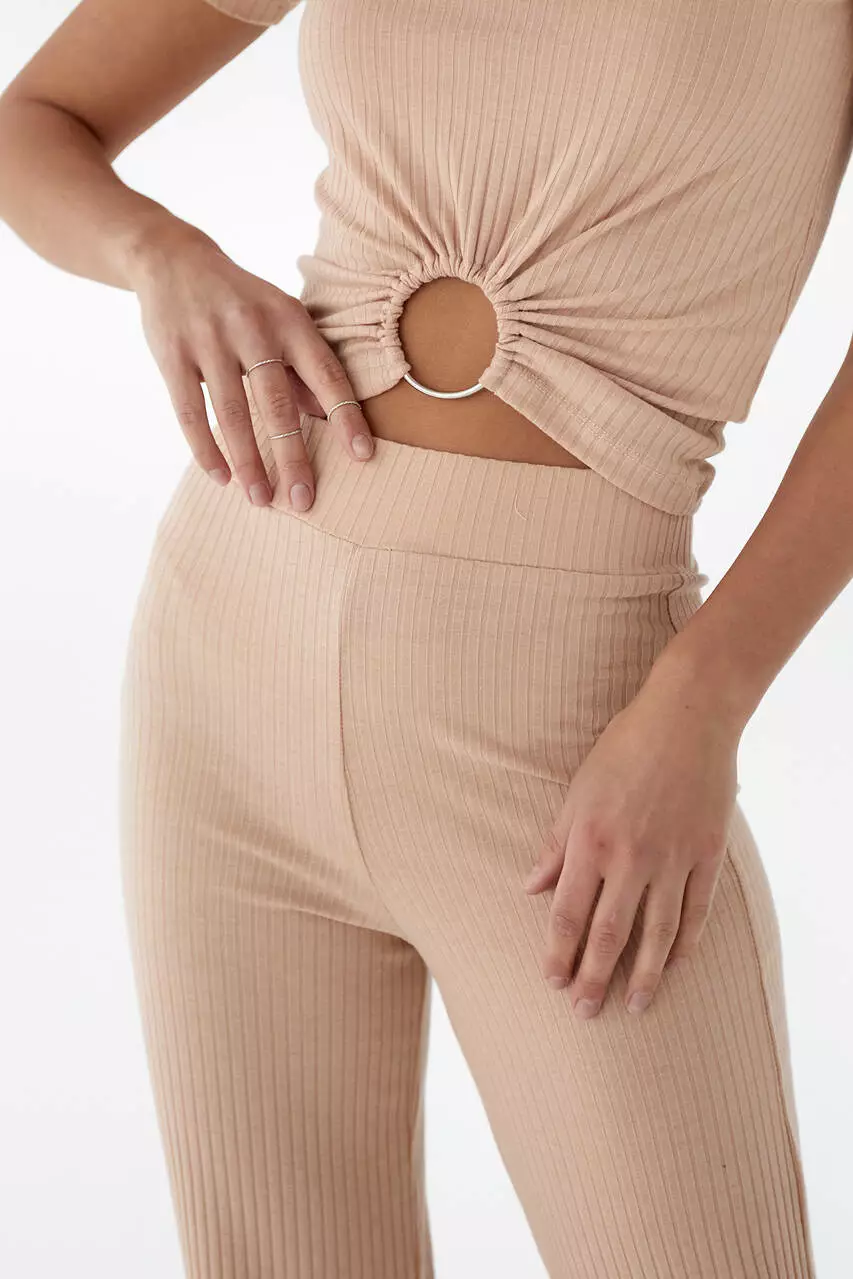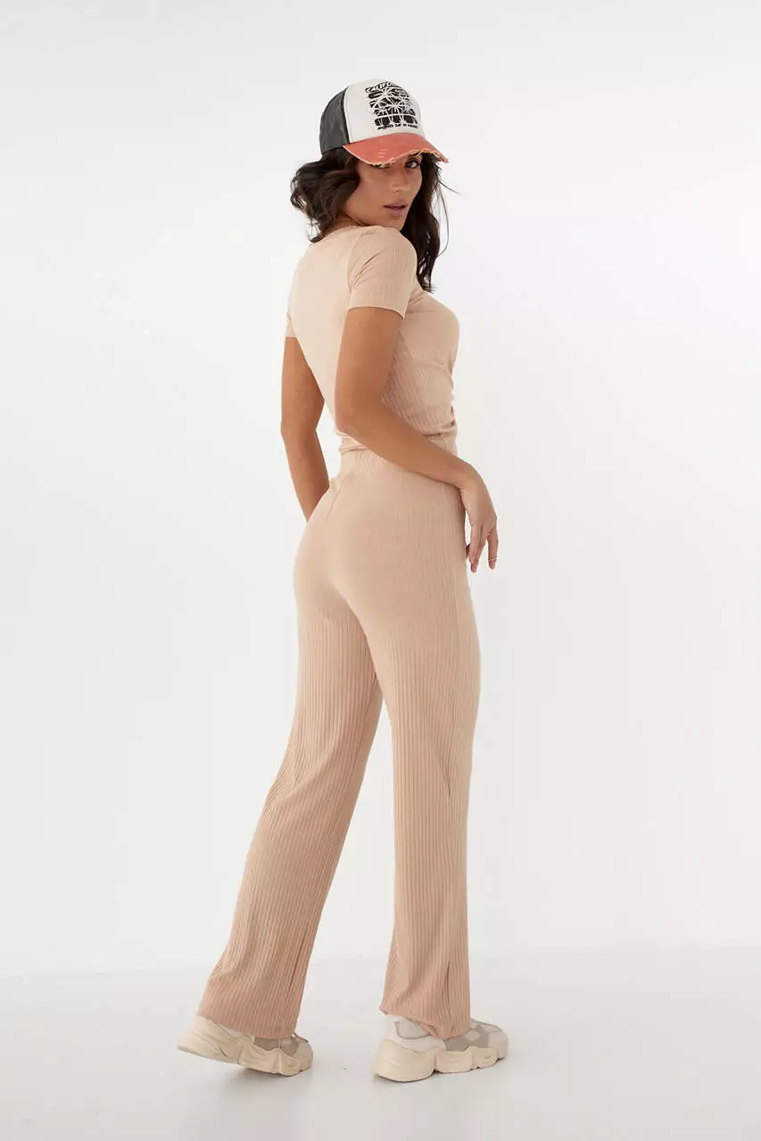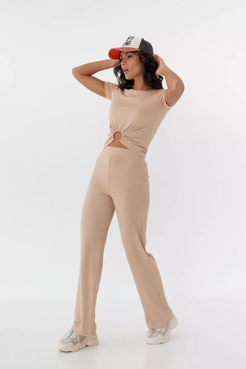 Трикотажный комплект с футболкой и широкими штанами Forstime - светло-коричневый цвет, L/XL (есть размеры)