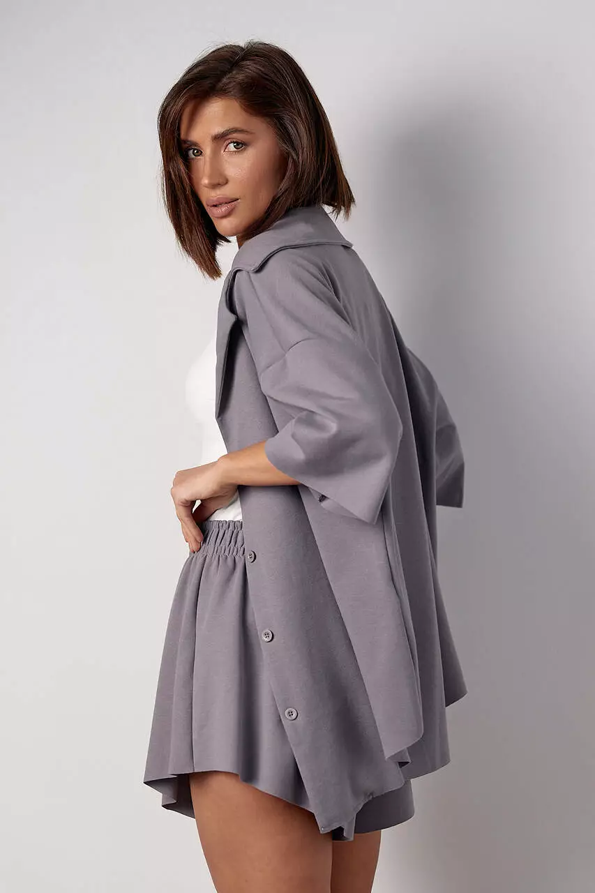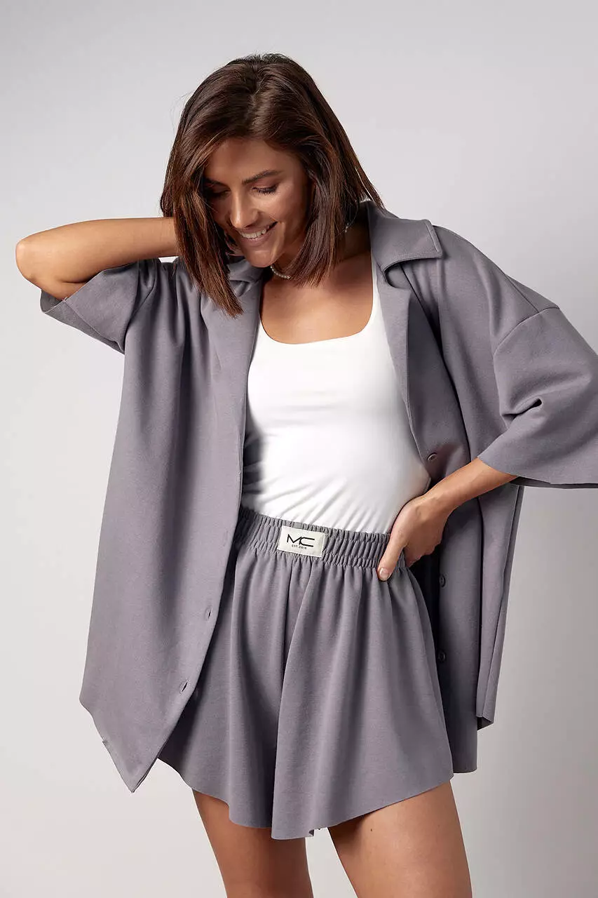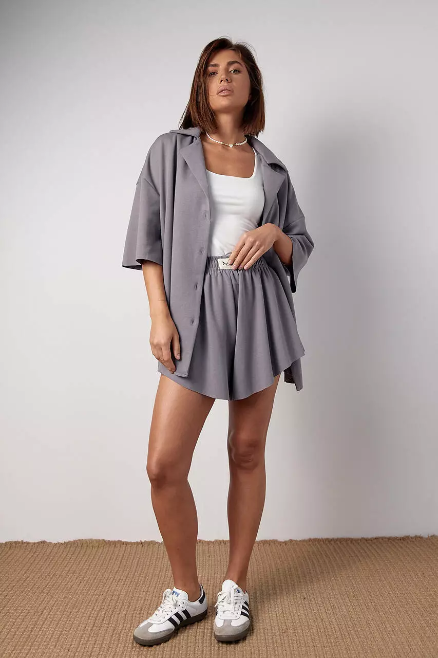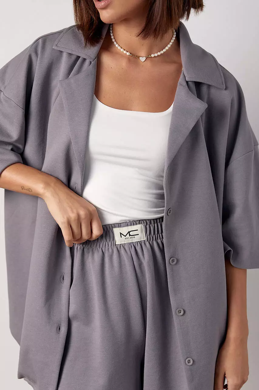 Трикотажный костюм-двойка с шортами и рубашкой - серый цвет, S (есть размеры)