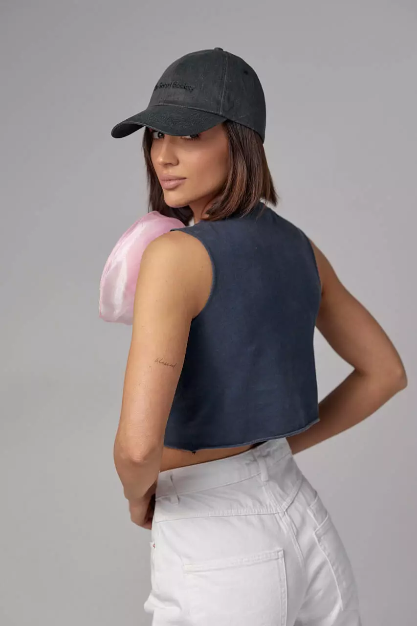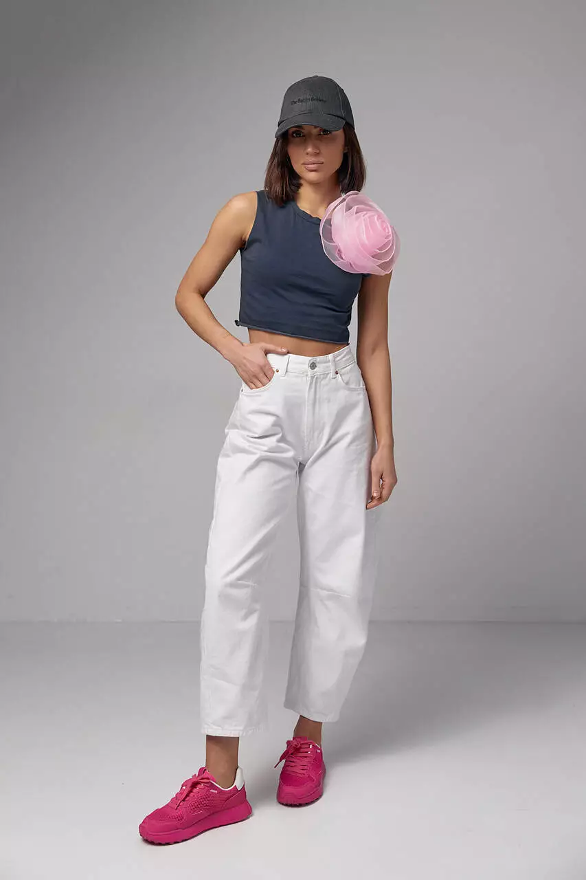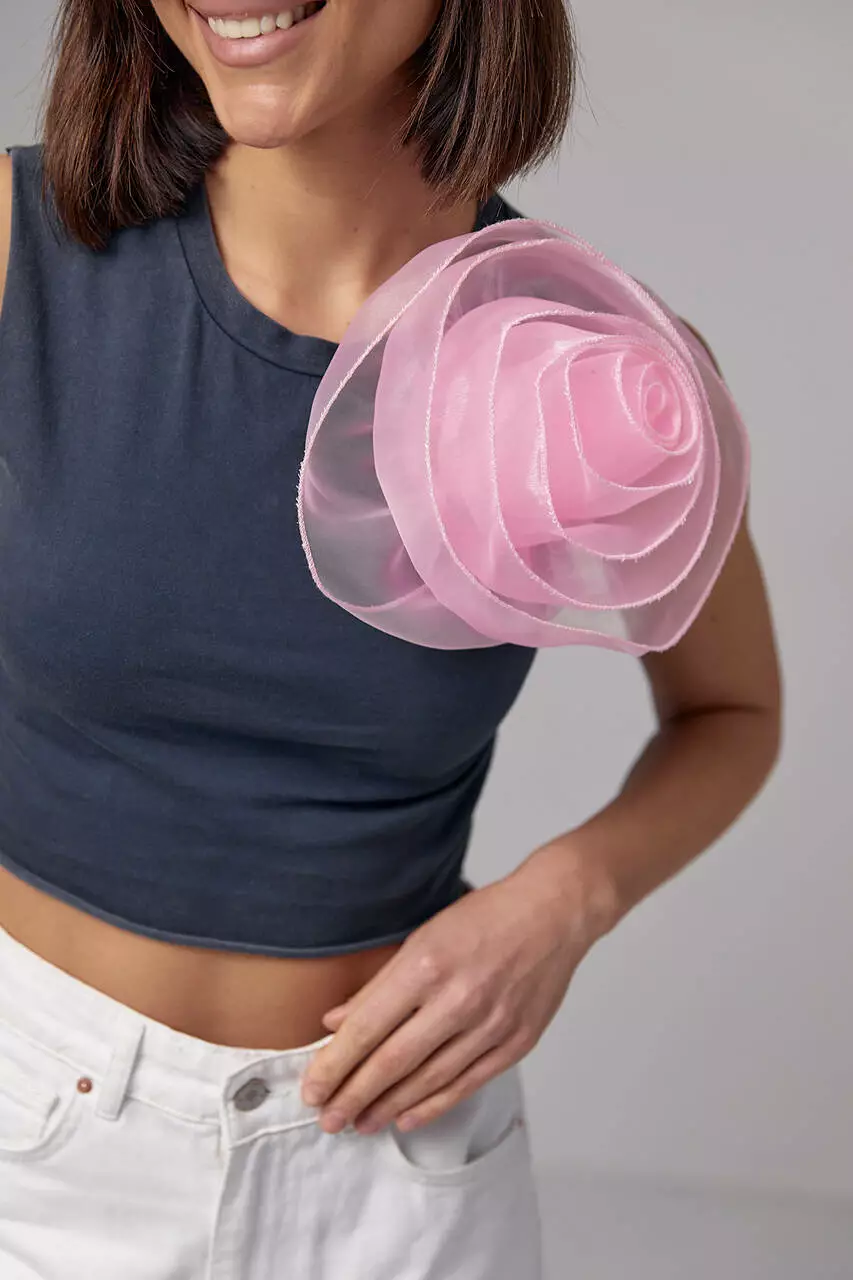 Особенностью этого топа является большой объемный цветок, который создает впечатление трехмерности и придает изделию изысканный вид.