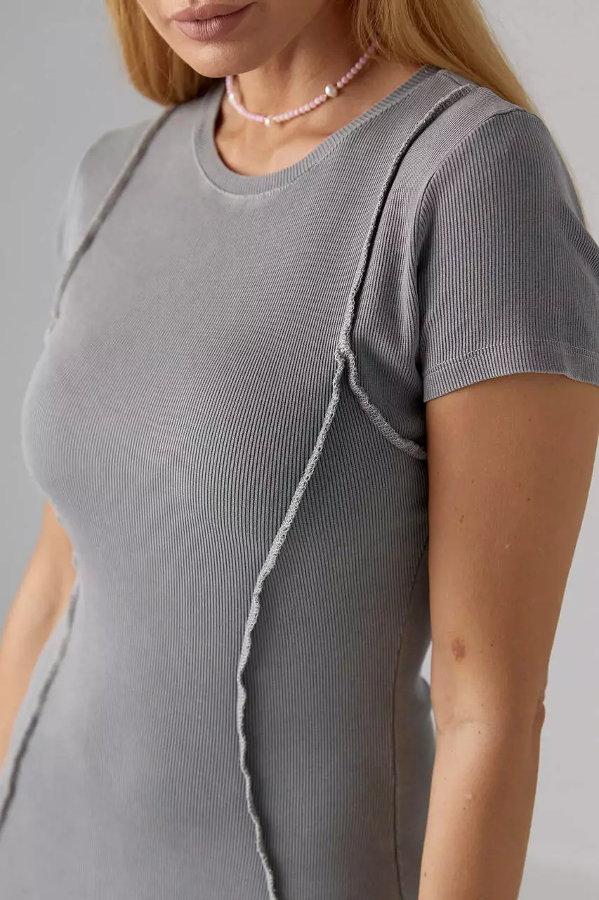 трикотажа в рубчик. Переднюю часть платья украшают