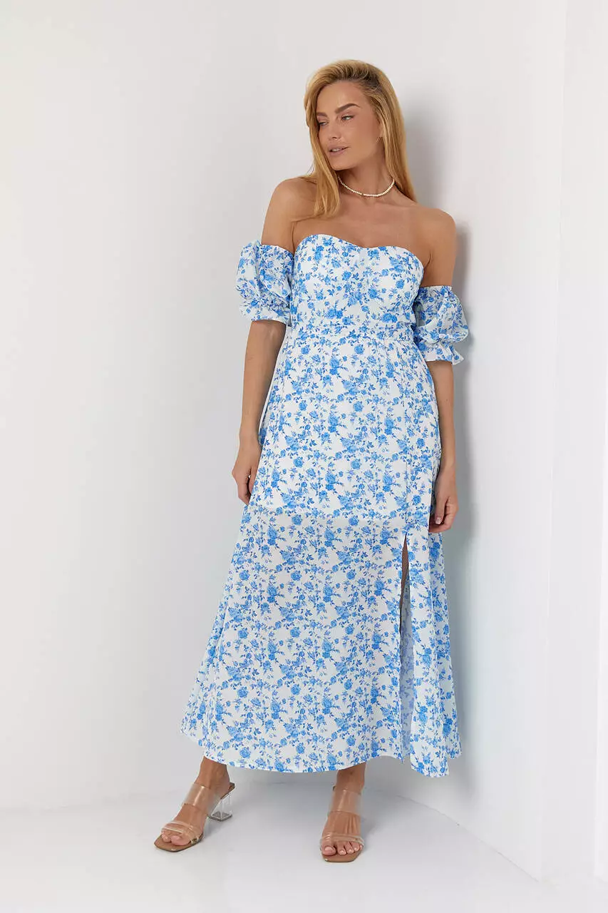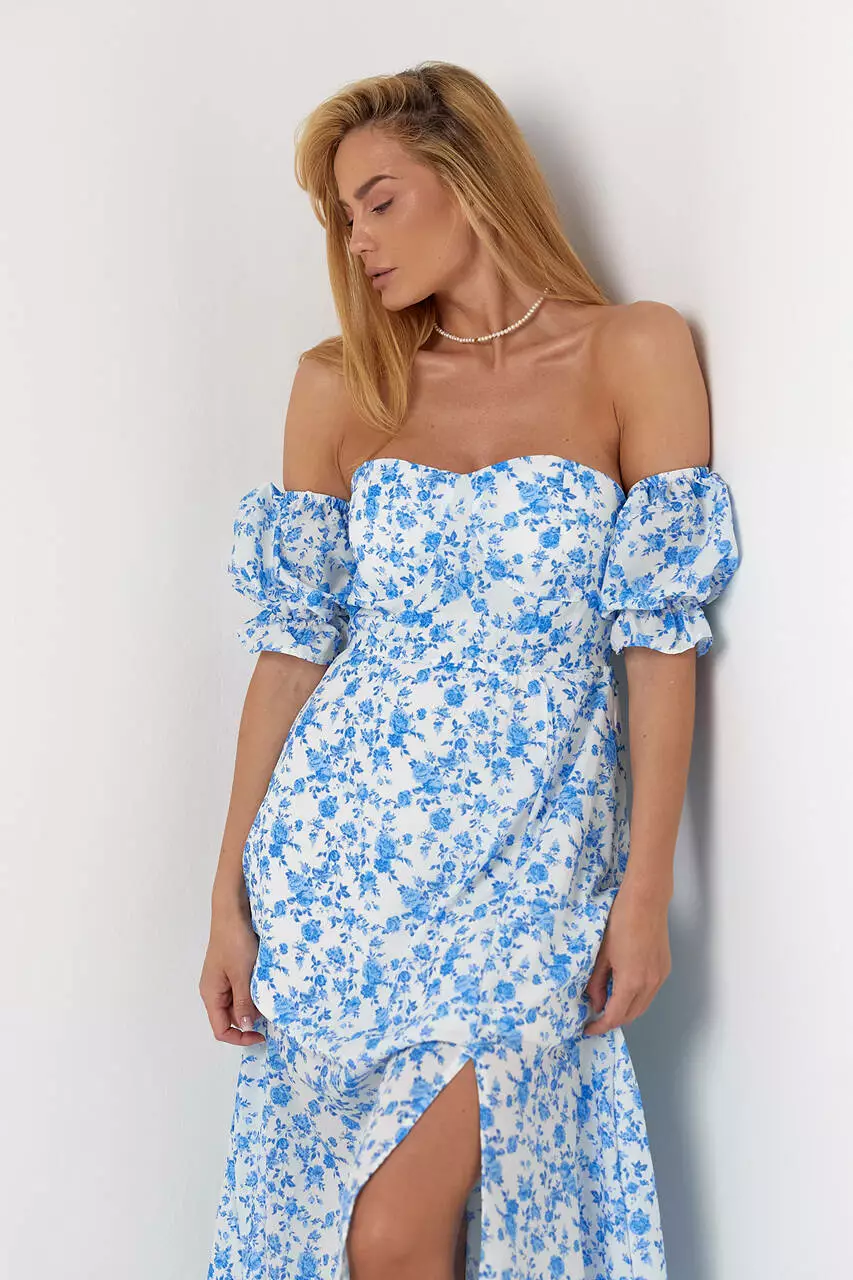 открытыми плечами вверху собраны на узкую резинку, а внизу украшены