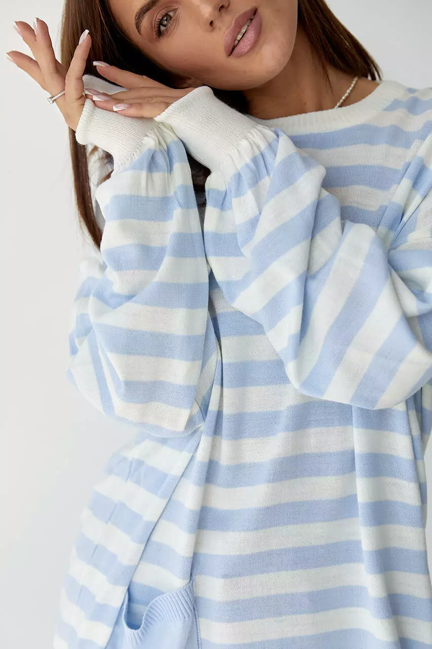 Эта женская туника поможет вам создать уютные и в то же время эффектные образы в холодное время года. Её секрет в модном узоре в полоску.