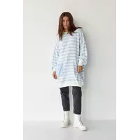 Туника женская в полоску с карманом - голубой цвет, L (есть размеры)