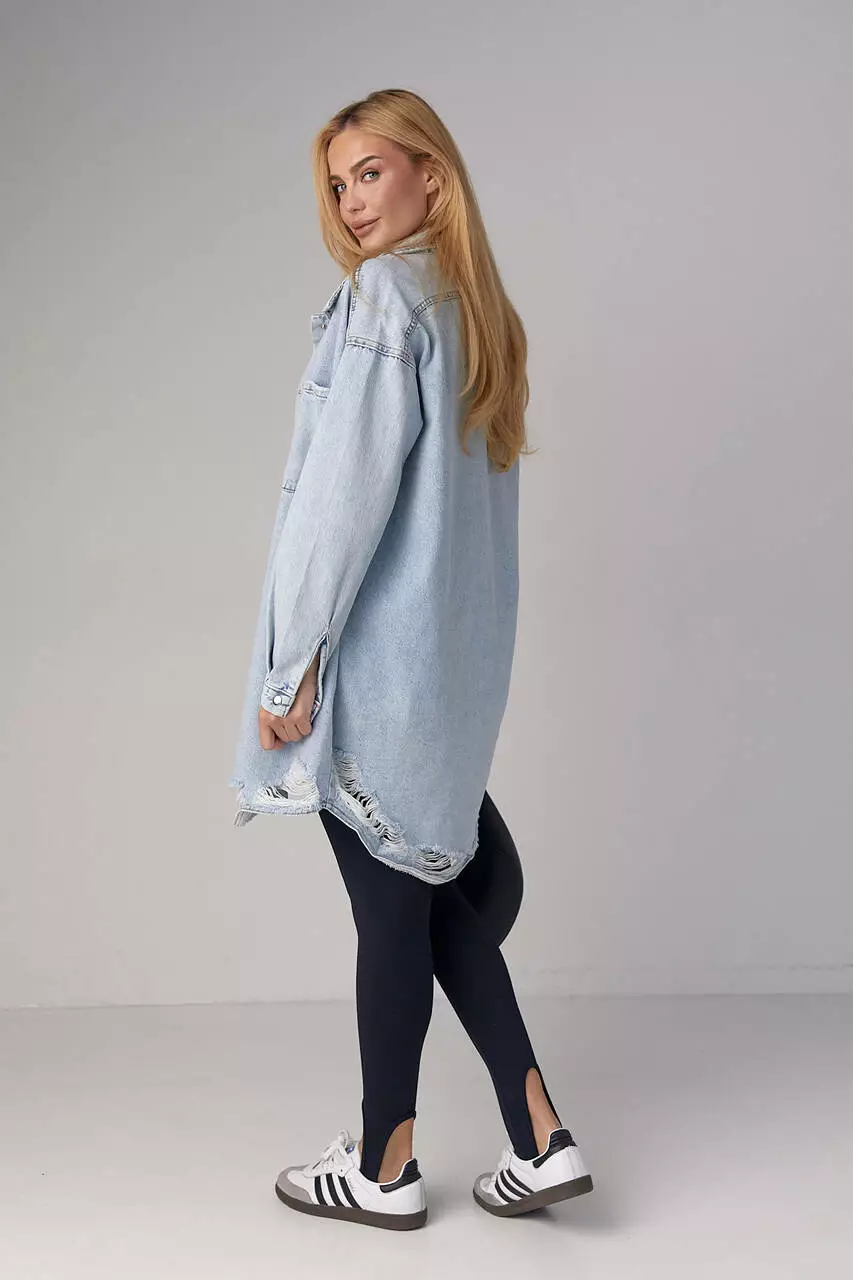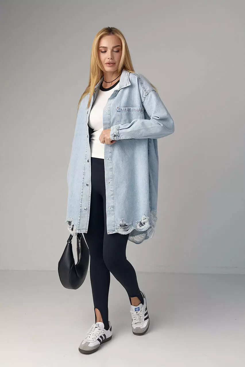 проймами и длинными рукавами с манжетами на металлической кнопке.
