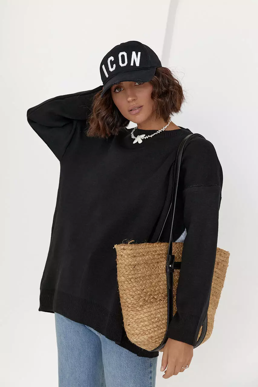 технике петельная вязка. Горловина дополнена небольшим воротником