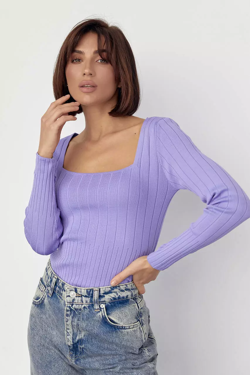 Эта модная короткая кофточка с длинными рукавами покорит твое сердце лаконичным дизайном и мягкой, чрезвычайно нежной к телу тканью. Модель полностью выполнена из машинной вязки в широкий рубчик. Низ изделия прямой, горловина в форме "каре", а края длинных рукавов заканчиваются вязкой в виде манжет с резинкой, вшитой по краям.