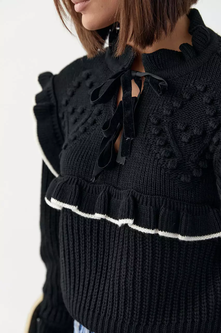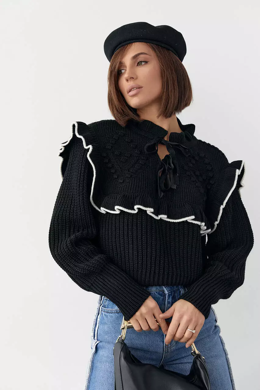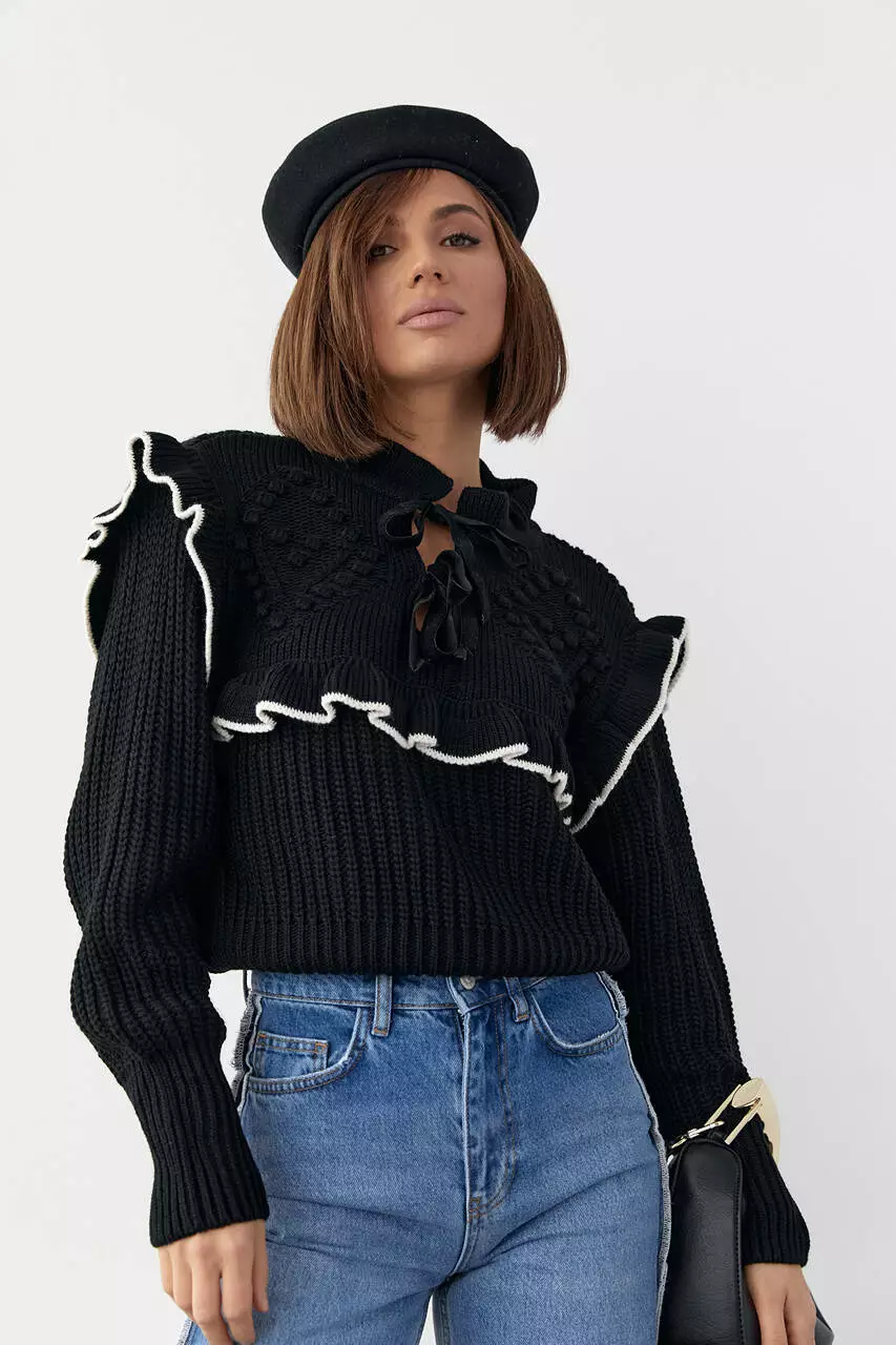 Разве можно устоять перед такой красивой кофтой с рюшами и нежными завязками! С ней ты можешь создавать множество образов и на каждый день, и для особого случая.