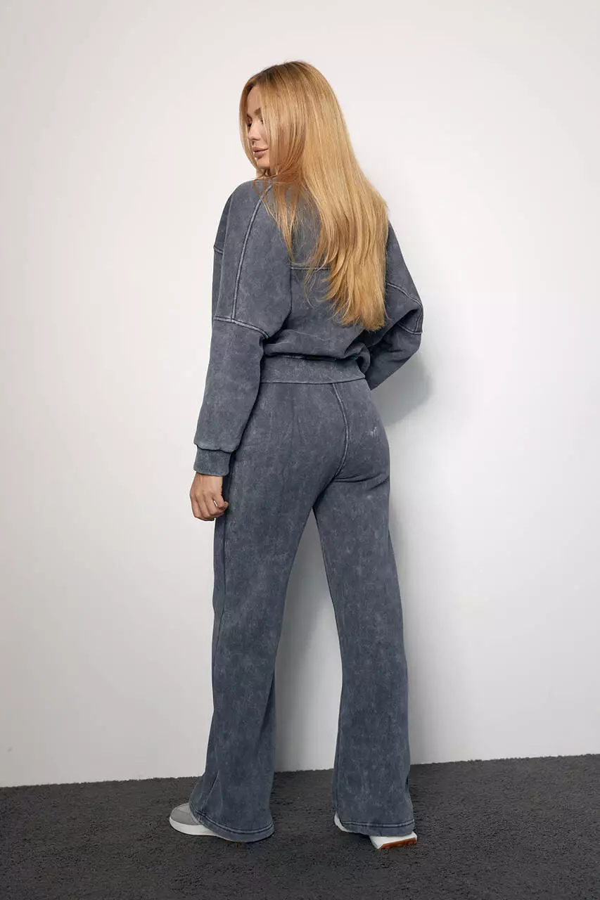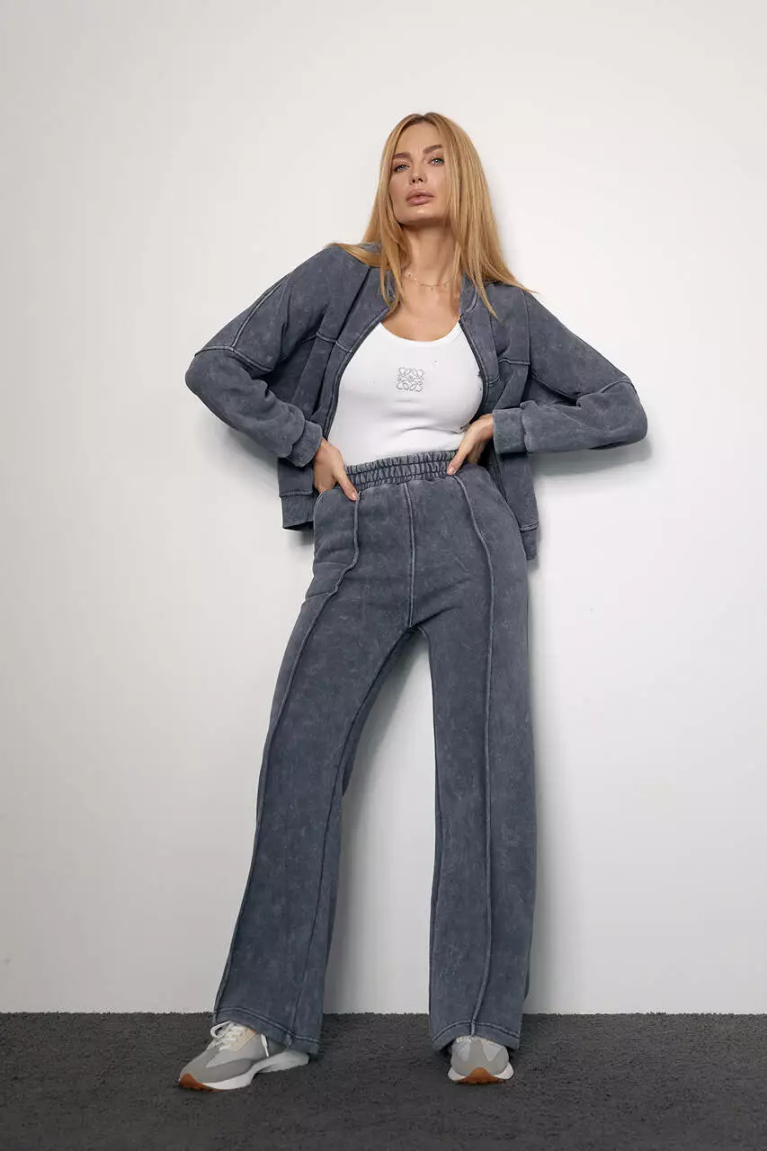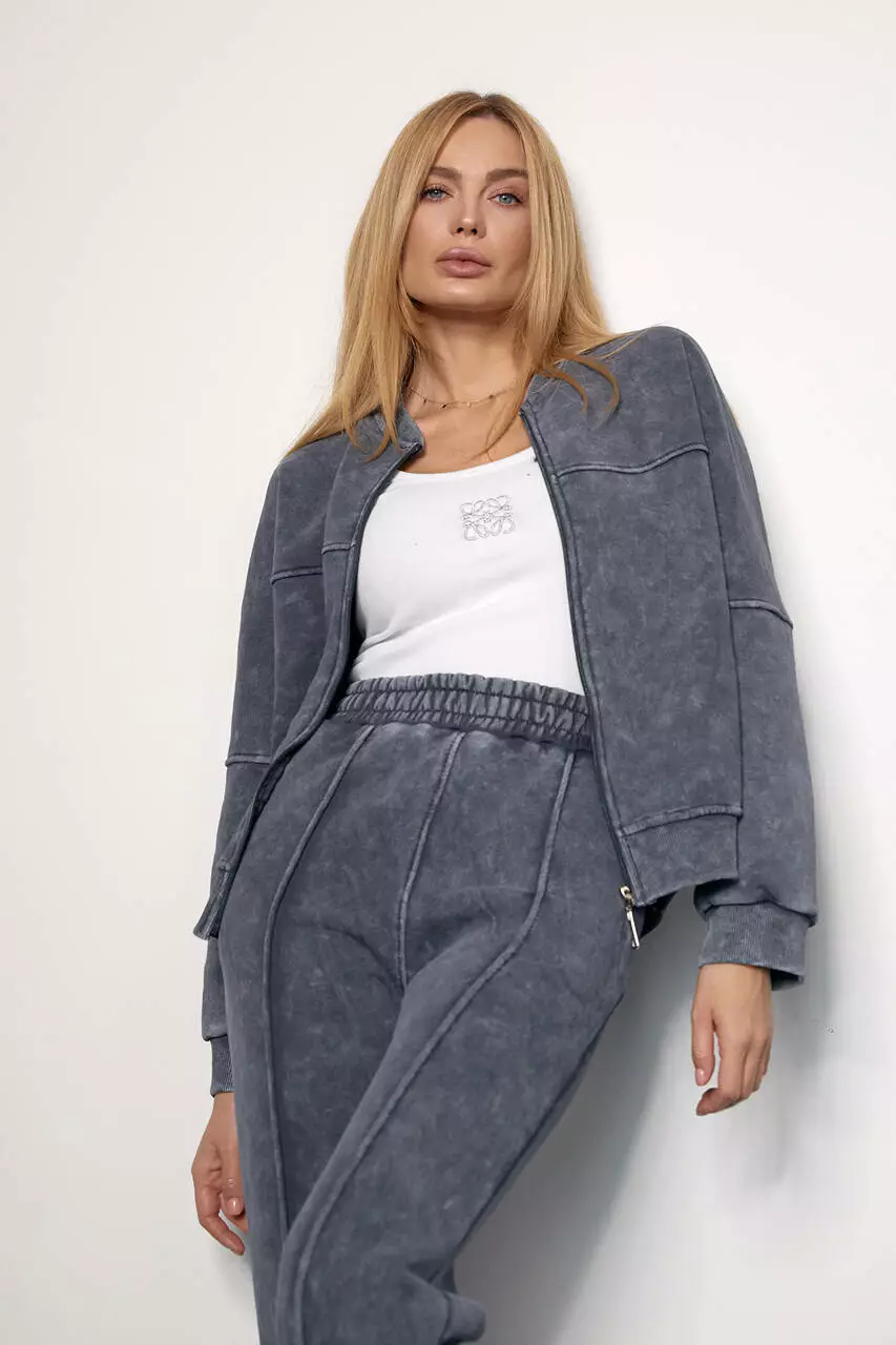 Утепленный спортивный костюм с бомбером и штанами в технике тай-дай - темно-серый цвет, L (есть размеры)