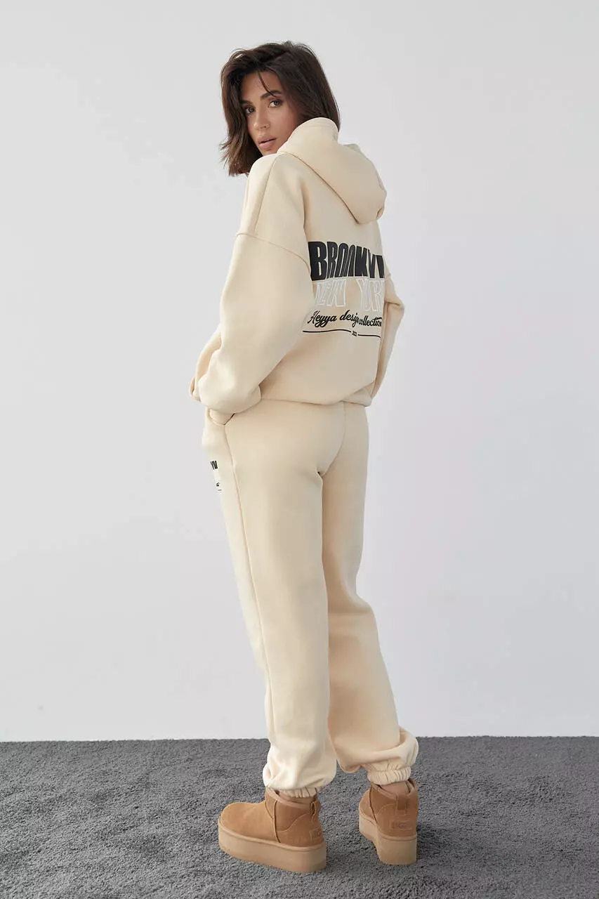 Утепленный спортивный костюм женский с джоггерами и худи - кремовый цвет, L (есть размеры)