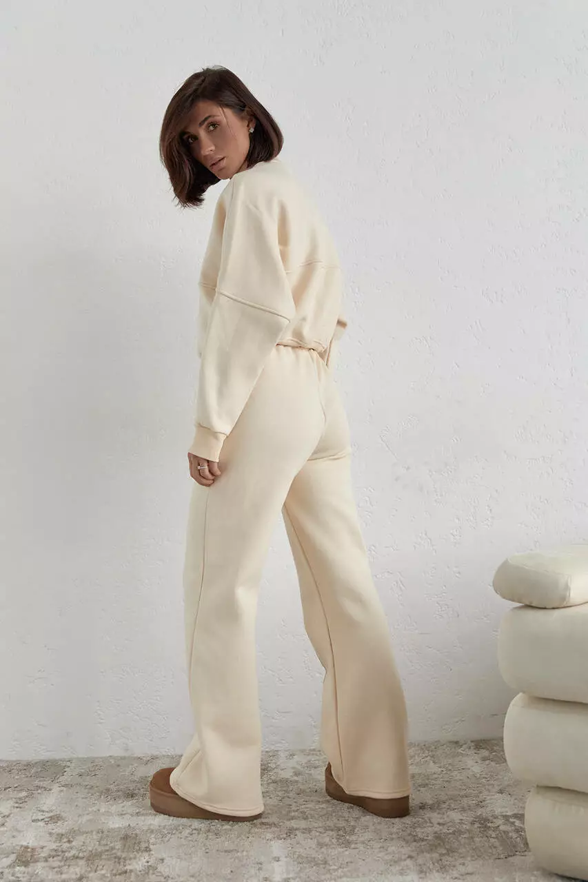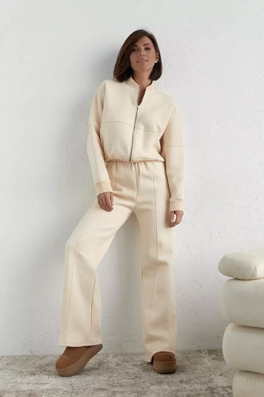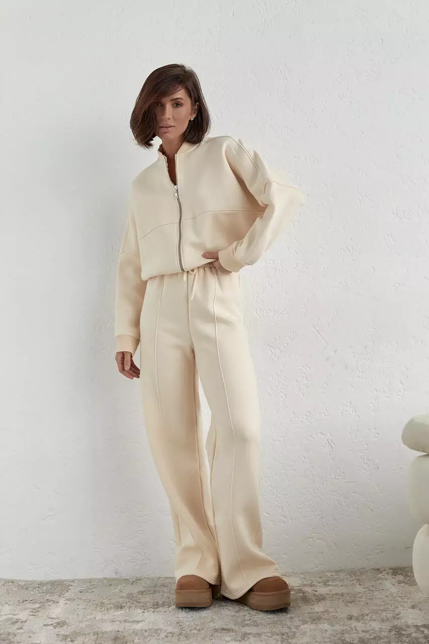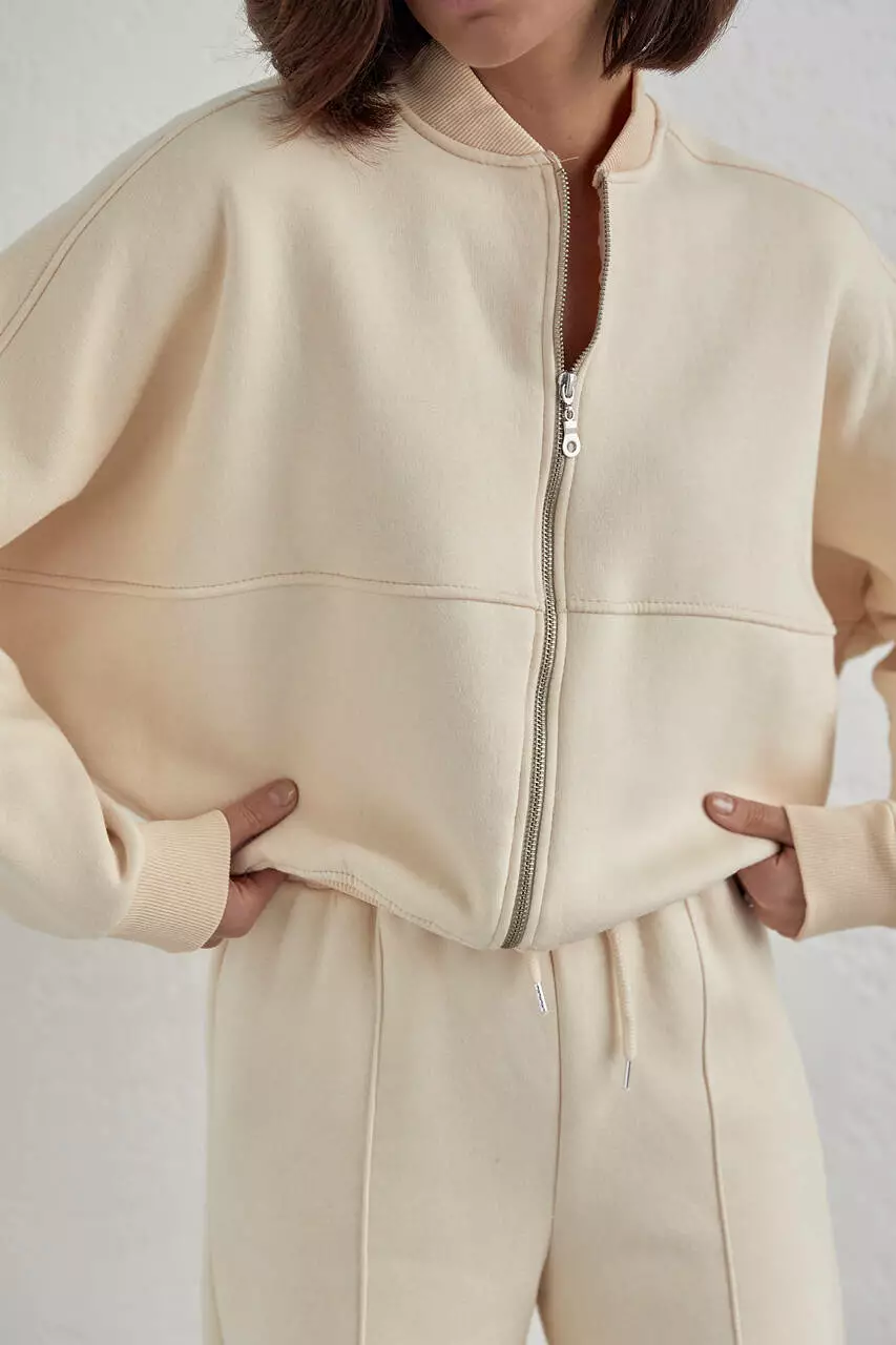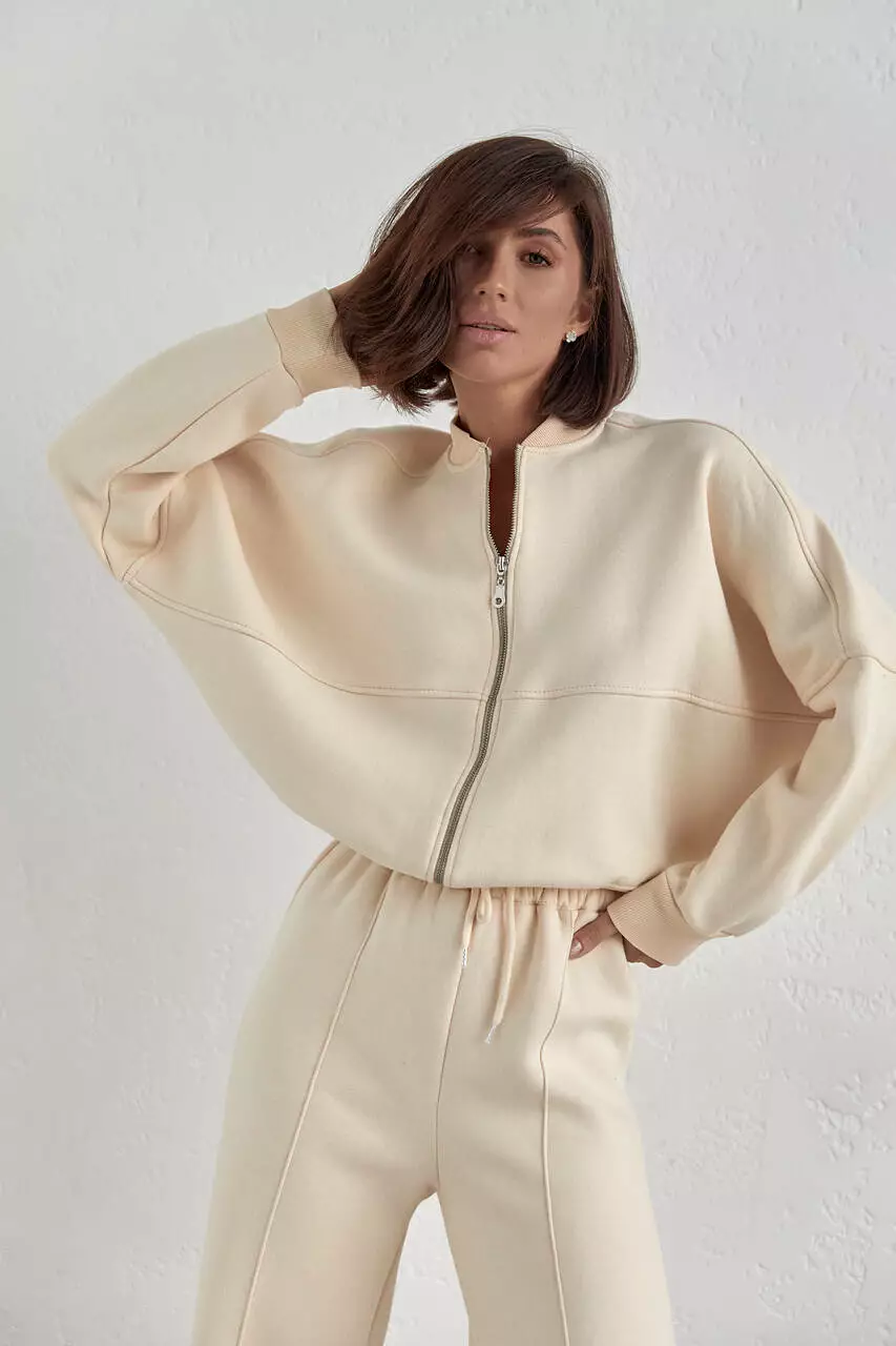 Утепленный женский спортивный костюм с бомбером и штанами - кремовый цвет, L (есть размеры)