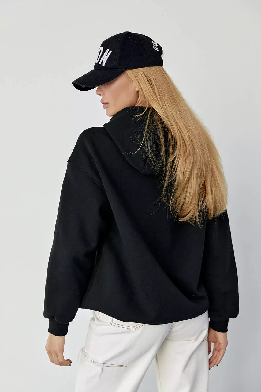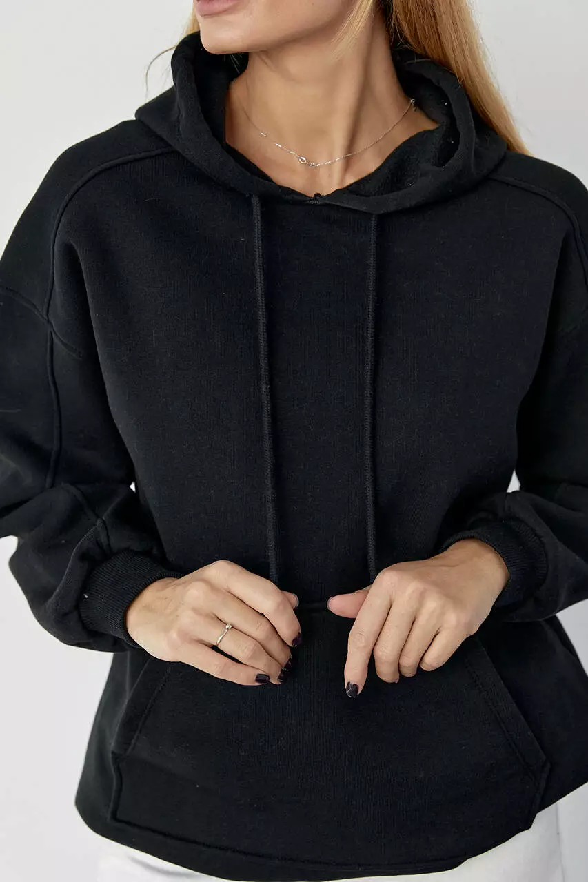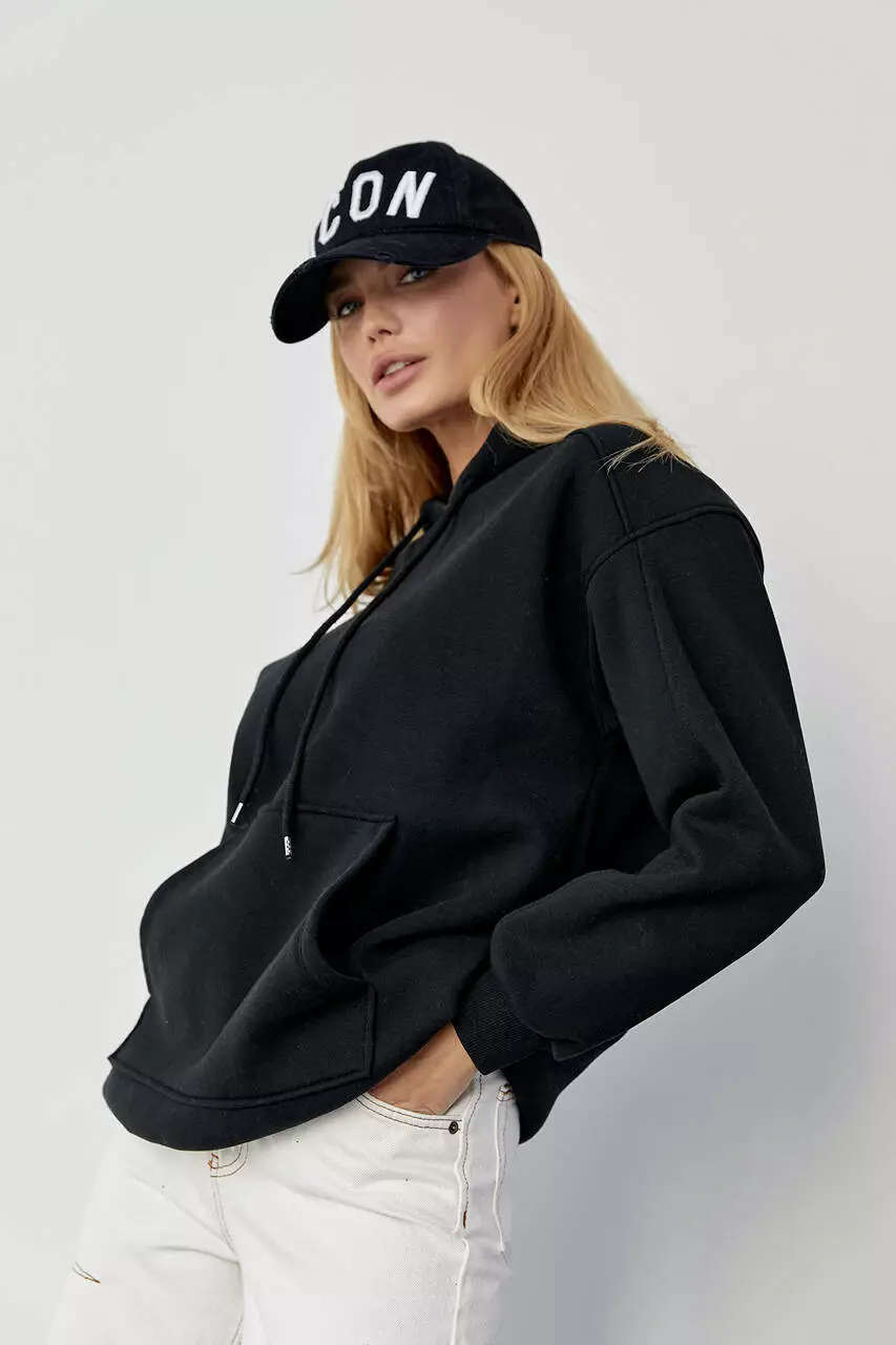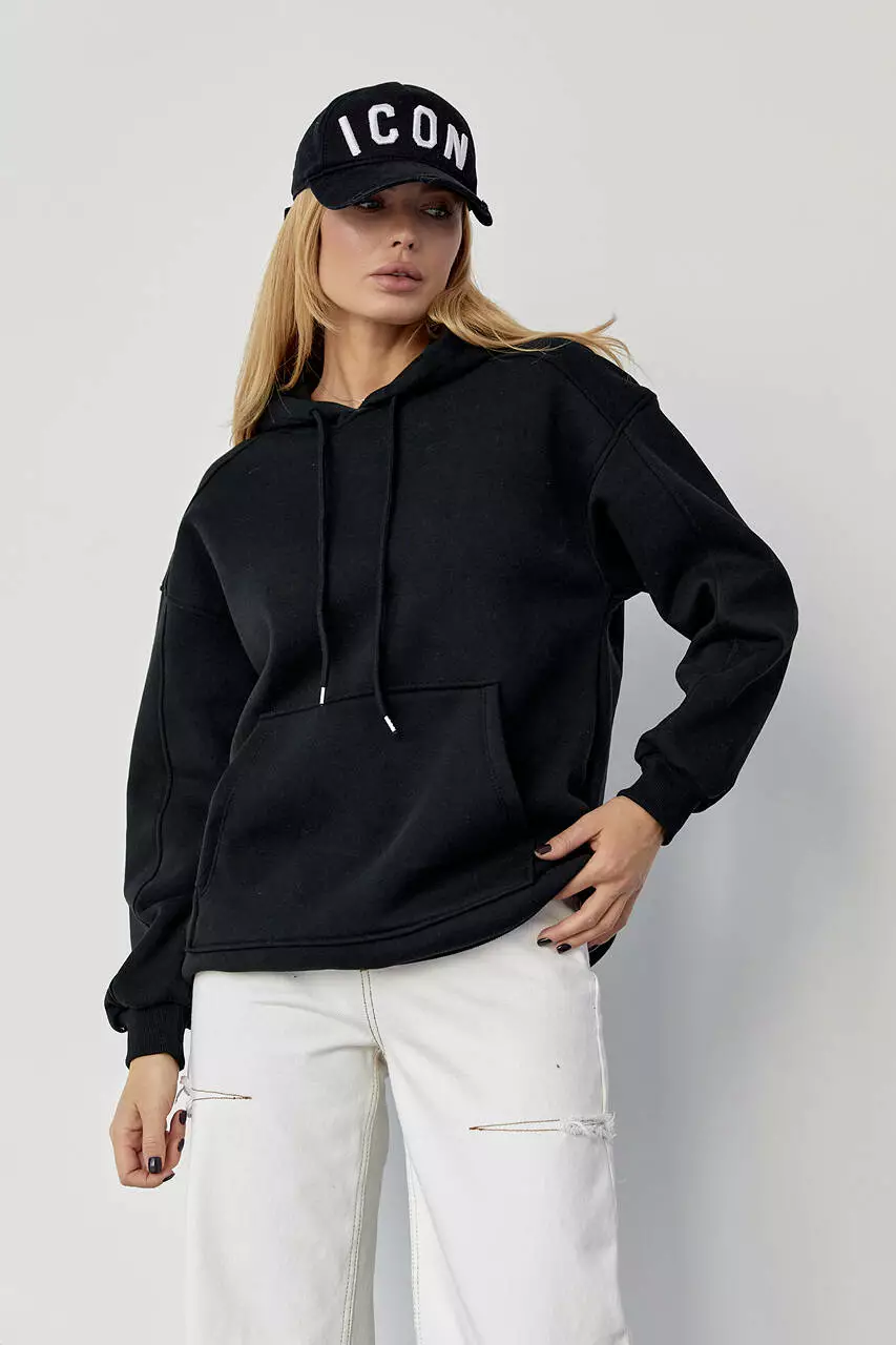 Эта модель с начесом выполнена в стиле оверсайз с опущенной
