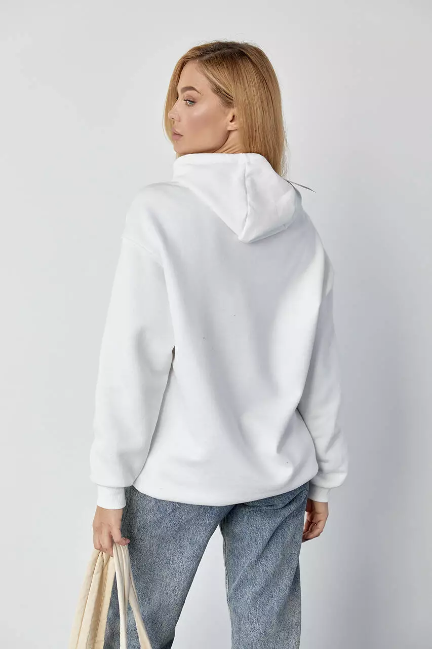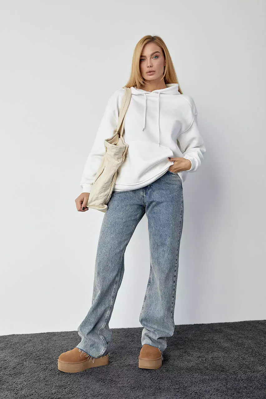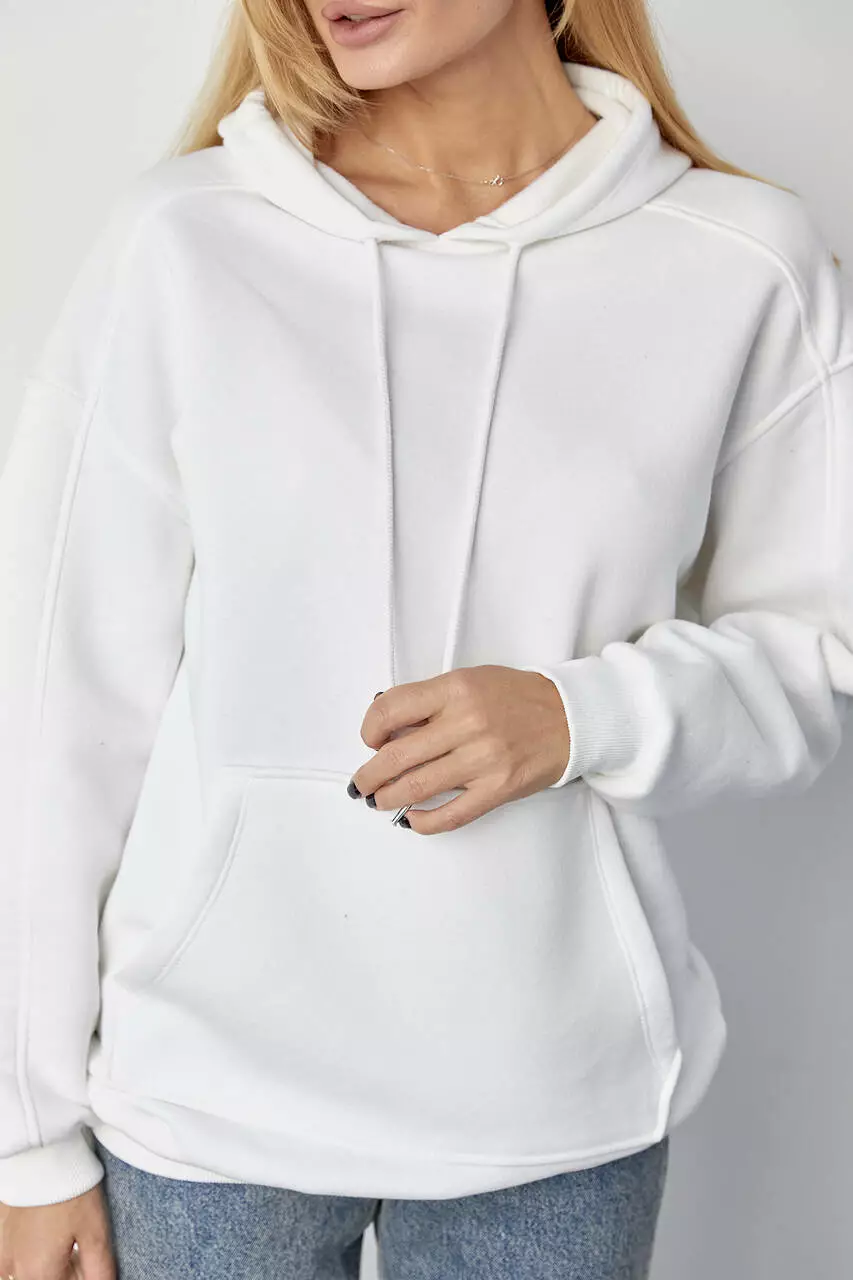 Эта модель с начесом выполнена в стиле оверсайз с опущенной